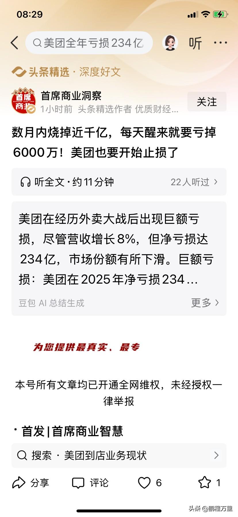 一个说外卖大战美团亏了234亿,一个说美团满打满算亏69亿,这是淘宝闪购撒720亿对美团轰炸的结果,720对69,美团赢麻了,还说美团根本不放在眼里,到底谁说的是事实呢?这些年美团的口碑真的不好,这么捧美团踩淘宝,很明显了