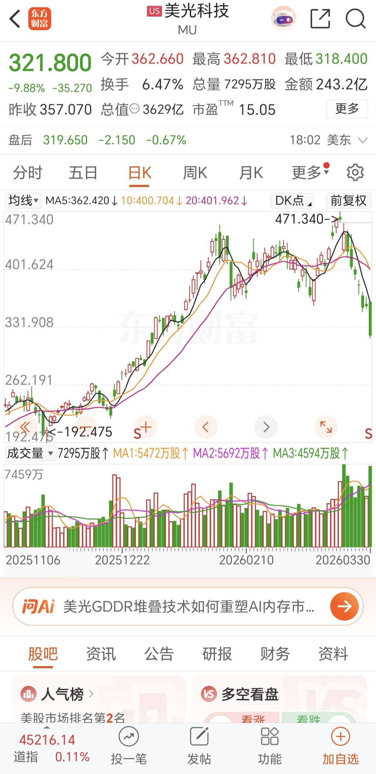 3.31周二 存储芯片利空,美光大跌10% 3.30晚间,美股存储芯片龙头,
