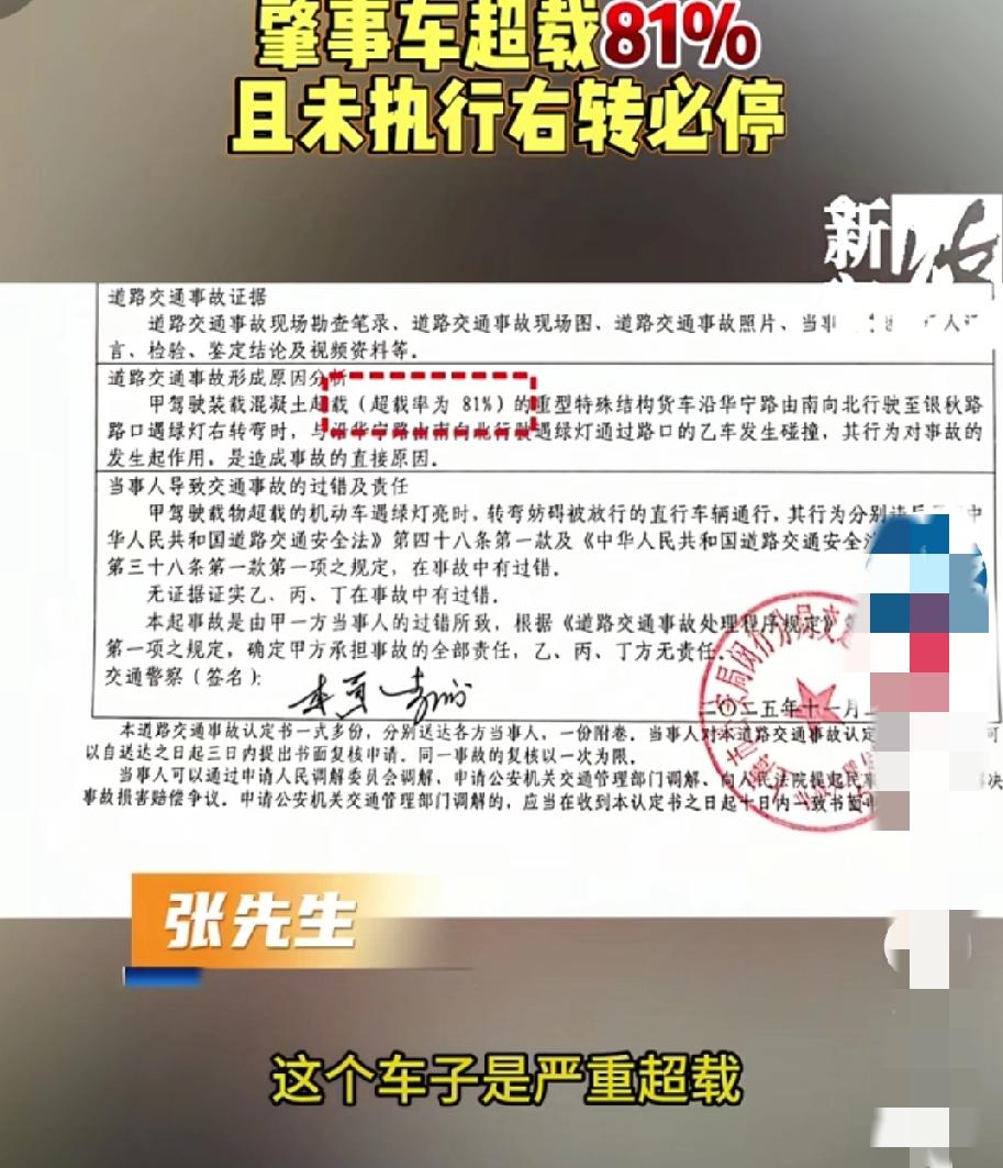 上海祖孙3人遭混凝土搅拌车撞倒碾压致1死1伤。 上海这起祖孙三人被撞的事故太让人痛心了。去年11月3日,张先生母亲骑电动车接俩孙女放学,被混凝土搅拌车撞倒碾压。老人当场身亡,7岁大女儿重伤双腿高位截肢,6岁小女儿皮外伤。 调查显示搅拌车挂靠“上海旭文物流有限公司”,事发时没遵守“右转必停”,还严重超载,超载率达81%,且事发前一个月几乎每趟都超限装载。事故认定书对方全责。可更气人的是,立案后涉事单位竟申请减资。这一家本就支离破碎,后续维权之路又添堵,真希望法律能给他们一个公正的结果。 老人撞车 老人逆行事故 城市交通悲剧