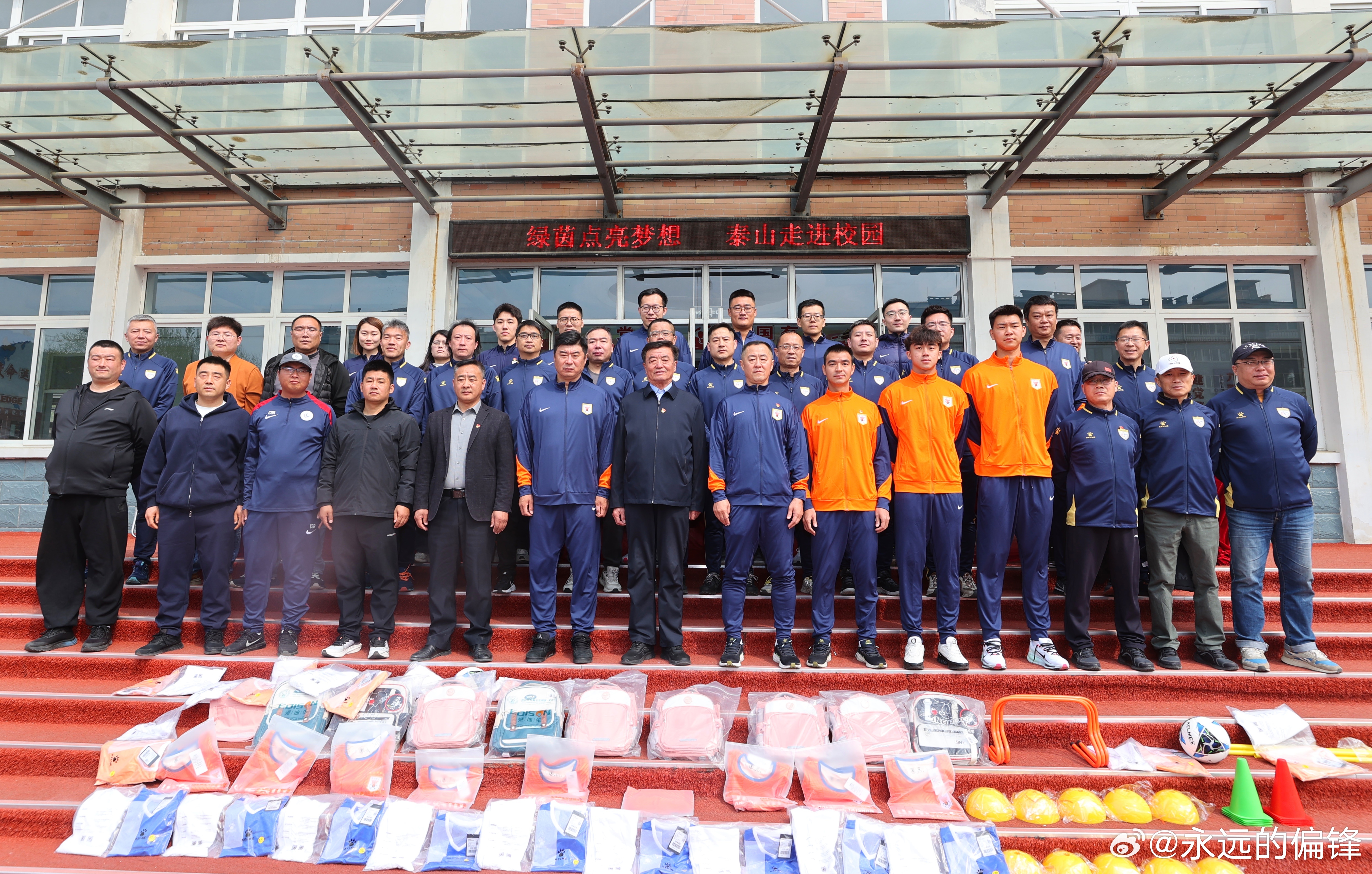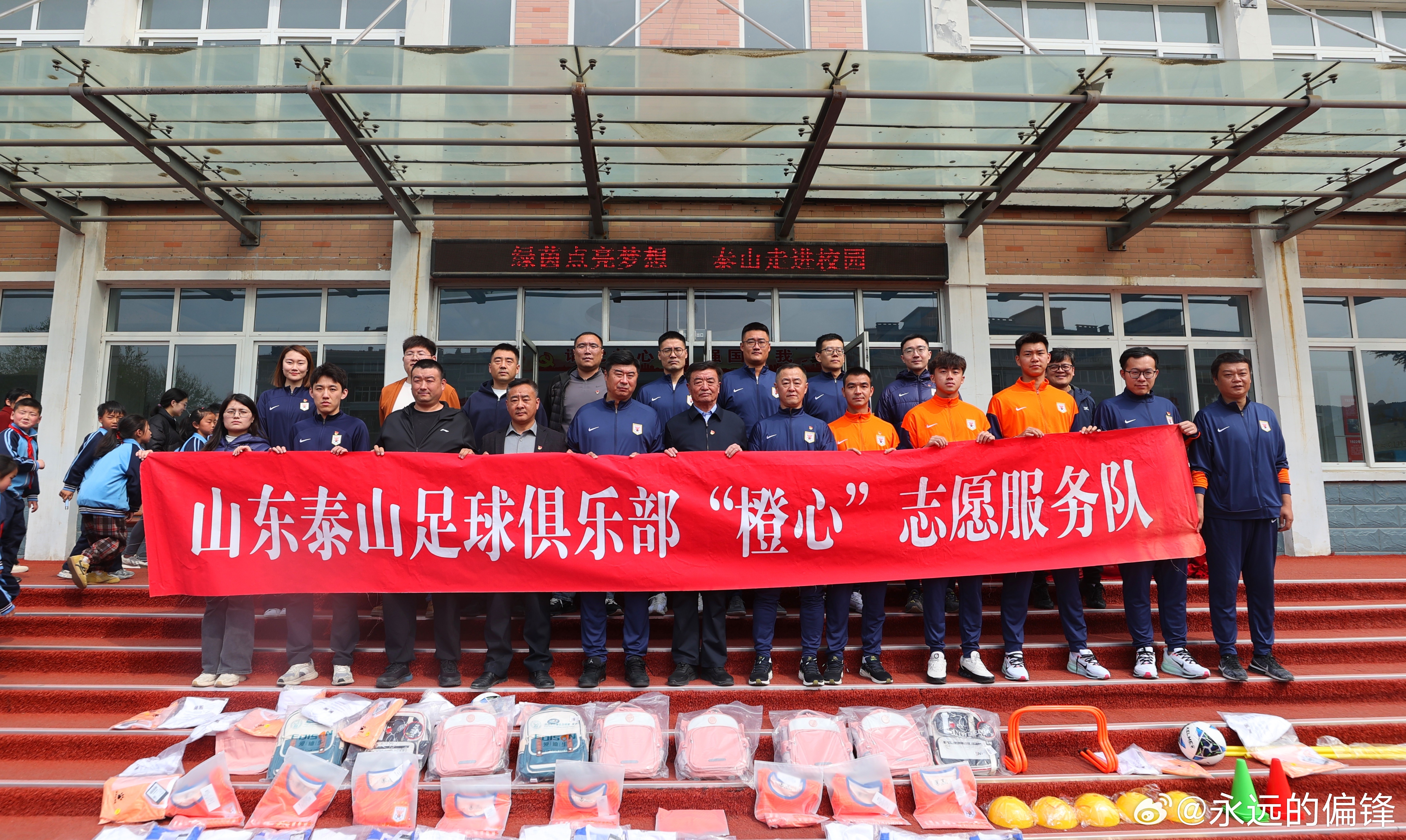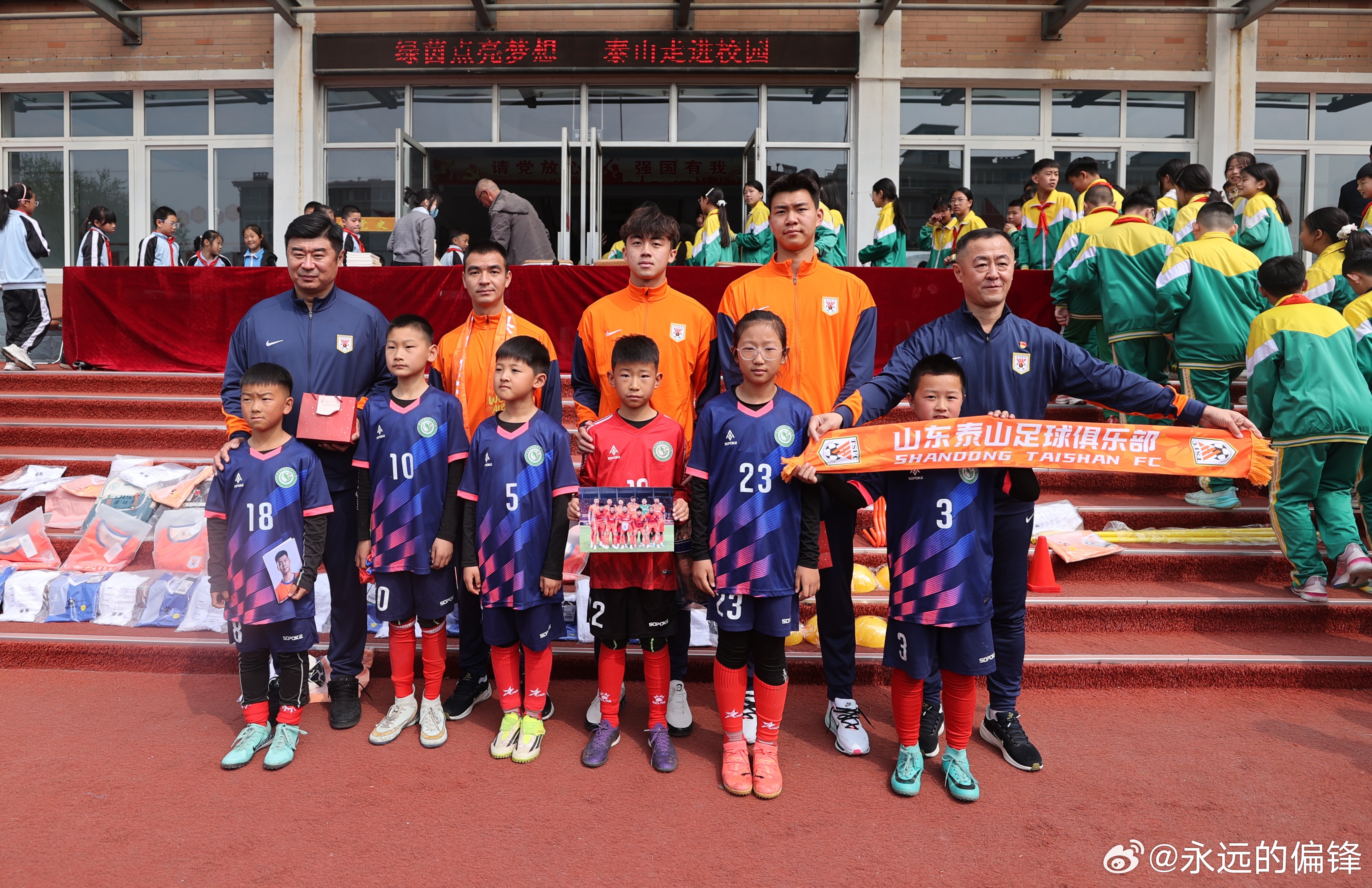 3月31日,山东泰山足球俱乐部携手山东省体育记者协会,走进济南市仲宫街道艾家村锦绣川中心小学,开展“绿茵先锋践初心 文明乡村共建设”——山东泰山足球俱乐部“双报到”暨“超越・爱”公益系列活动。山东泰山足球俱乐部足球党支部党员,一线队教练组组长韩鹏、球员党员刘彬彬、球员代表路俊伟、彭逸翔,山东省体育记者协会代表,艾家村“两委”成员与锦绣川中心小学师生代表参加了此次活动。活动伊始,各方代表开展简短座谈,围绕党组织共建、乡村精神文化建设、青少年足球培育等话题进行交流。座谈结束后,活动仪式正式开启。山东泰山足球俱乐部足球党支部书记、球队领队范学伟在致辞中表示,俱乐部始终坚持党建引领,严格落实“双报到”工作部署,此次通过党建资源共享、公益服务落地的形式,把党组织服务送到基层一线。未来将常态化开展党组织共建与公益服务,让足球精神、公益精神和泰山队精神在乡村落地生根。仪式上,范学伟向艾家村党支部赠送党建学习图书;韩鹏、刘彬彬、路俊伟、彭逸翔向艾家村锦绣川中心小学赠送签名足球、球衣、专业足球运动装备;山东体育记者足球联队代表向学生代表赠送学习用品。捐赠仪式后,球员们为学校足球队员带来专业足球公益课,讲解足球规则、示范带球颠球等基础技能,还组织带球接力、射门比赛等趣味游戏。孩子们在互动中感受足球乐趣。谈及此次公益行,韩鹏表示,希望以足球为纽带为孩子带去温暖,在他们心中种下体育的种子,传递拼搏向上的精神,期盼未来多开展此类活动助力乡村青少年体育发展。刘彬彬表示,能为乡村孩子分享足球乐趣,助力青少年足球成长,觉得格外有价值。此次活动是山东泰山足球俱乐部以党建引领践行社会责任的生动实践。扎实落实“双报到”相关制度要求,推动俱乐部党组织与艾家村党组织建立资源共享、优势互补的长效共建机制。以“超越・爱”公益活动为载体,为乡村青少年送上专业足球资源,为乡村青少年足球发展注入新活力。 山东泰山足球俱乐部始终秉持泰山队精神,将党建工作与公益事业、体育发展深度融合。未来俱乐部将持续以党建为引领深耕公益领域,以实际行动助力乡村振兴,为青少年足球人才培养贡献齐鲁体育力量。