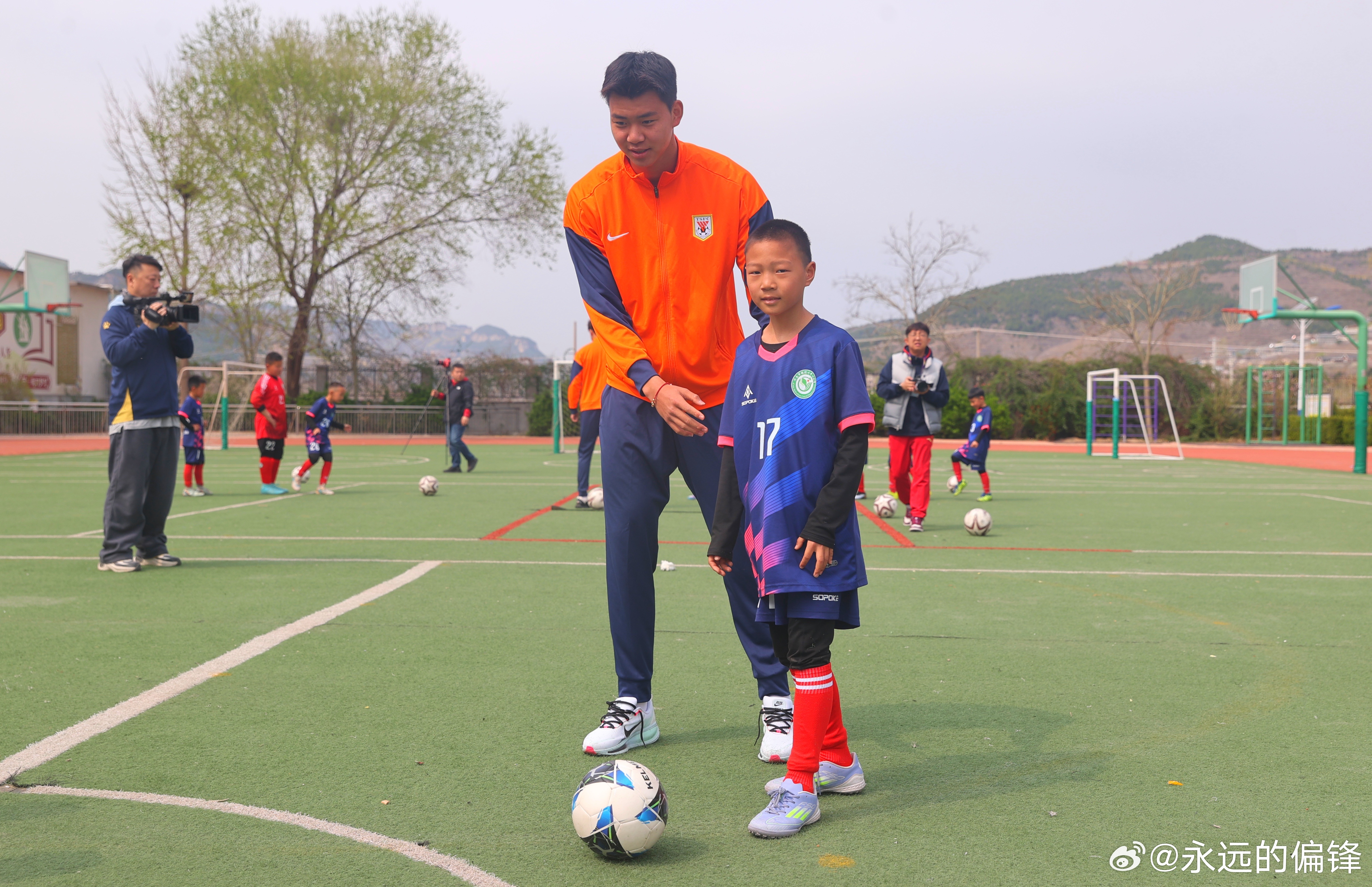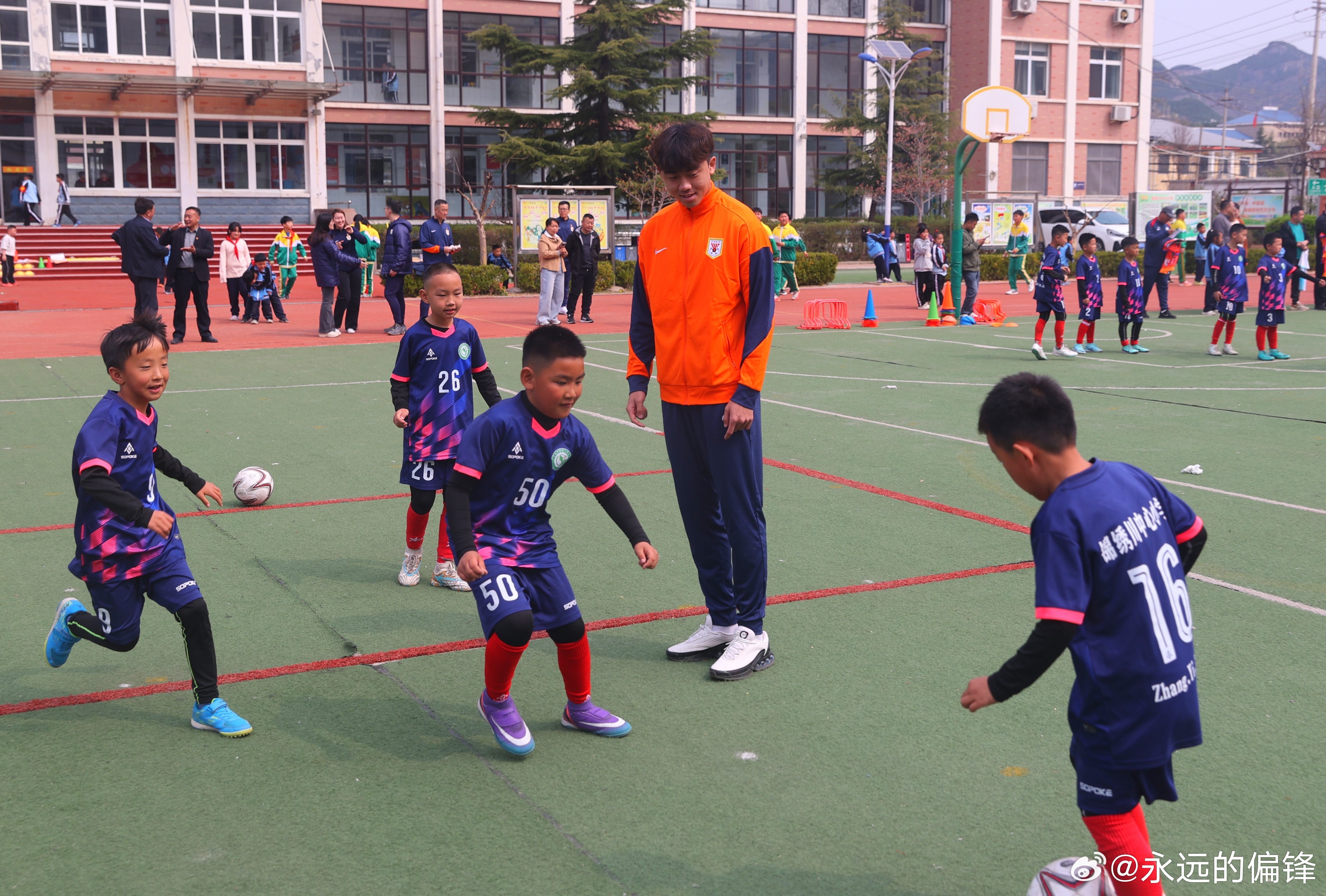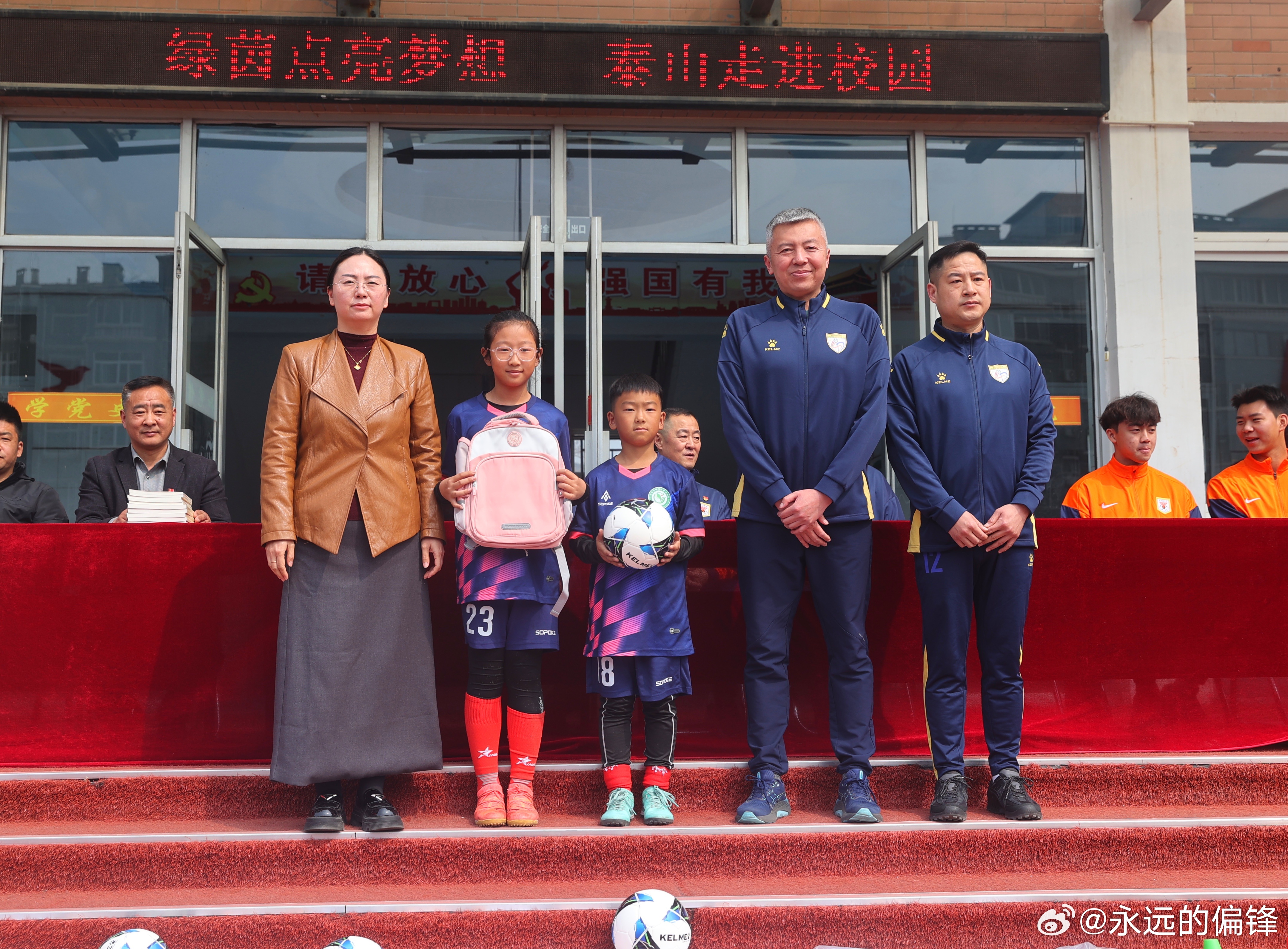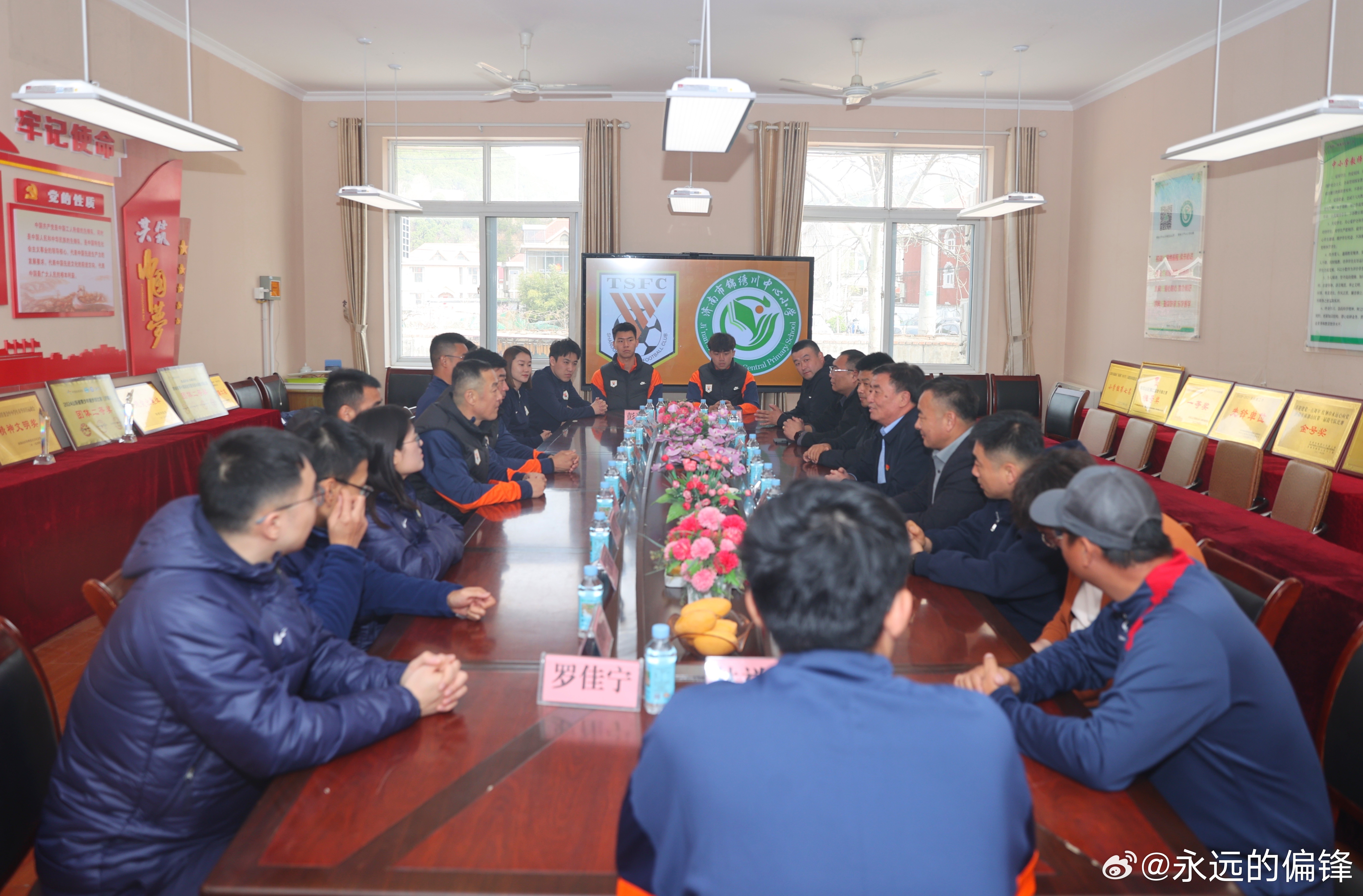 3月31日,山东泰山足球俱乐部携手山东省体育记者协会,走进济南市仲宫街道艾家村锦绣川中心小学,开展“绿茵先锋践初心 文明乡村共建设”——山东泰山足球俱乐部“双报到”暨“超越・爱”公益系列活动。山东泰山足球俱乐部足球党支部党员,一线队教练组组长韩鹏、球员党员刘彬彬、球员代表路俊伟、彭逸翔,山东省体育记者协会代表,艾家村“两委”成员与锦绣川中心小学师生代表参加了此次活动。活动伊始,各方代表开展简短座谈,围绕党组织共建、乡村精神文化建设、青少年足球培育等话题进行交流。座谈结束后,活动仪式正式开启。山东泰山足球俱乐部足球党支部书记、球队领队范学伟在致辞中表示,俱乐部始终坚持党建引领,严格落实“双报到”工作部署,此次通过党建资源共享、公益服务落地的形式,把党组织服务送到基层一线。未来将常态化开展党组织共建与公益服务,让足球精神、公益精神和泰山队精神在乡村落地生根。仪式上,范学伟向艾家村党支部赠送党建学习图书;韩鹏、刘彬彬、路俊伟、彭逸翔向艾家村锦绣川中心小学赠送签名足球、球衣、专业足球运动装备;山东体育记者足球联队代表向学生代表赠送学习用品。捐赠仪式后,球员们为学校足球队员带来专业足球公益课,讲解足球规则、示范带球颠球等基础技能,还组织带球接力、射门比赛等趣味游戏。孩子们在互动中感受足球乐趣。谈及此次公益行,韩鹏表示,希望以足球为纽带为孩子带去温暖,在他们心中种下体育的种子,传递拼搏向上的精神,期盼未来多开展此类活动助力乡村青少年体育发展。刘彬彬表示,能为乡村孩子分享足球乐趣,助力青少年足球成长,觉得格外有价值。此次活动是山东泰山足球俱乐部以党建引领践行社会责任的生动实践。扎实落实“双报到”相关制度要求,推动俱乐部党组织与艾家村党组织建立资源共享、优势互补的长效共建机制。以“超越・爱”公益活动为载体,为乡村青少年送上专业足球资源,为乡村青少年足球发展注入新活力。 山东泰山足球俱乐部始终秉持泰山队精神,将党建工作与公益事业、体育发展深度融合。未来俱乐部将持续以党建为引领深耕公益领域,以实际行动助力乡村振兴,为青少年足球人才培养贡献齐鲁体育力量。