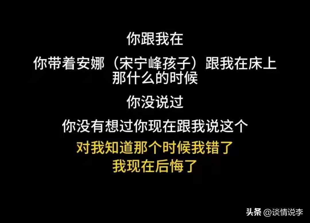 先总结再论述:宋宁峰是个绝对的人渣。 在已婚的情况下追求Q女士,隐瞒已婚身份,后被识破,表示要离婚娶她。这是他的套路,一开始就给对方画饼。 画饼给小三之后,为了掩盖出轨,竟然带着5岁的女儿和小三厮混。在对方的录音中,可以听到女儿喊“爸爸”的声音。你说这个够炸裂吧?是个人,都做不出来这样的事情。这是疯了吗,女儿在旁边啊!她以后不会有心理阴影吗?5岁了啊! 被老婆张婉婷发现婚外情之后,宋宁峰立即扑向老婆的怀抱,说是小三勾引的他,把自己择得干干净净,摆出一副受害者的丑恶嘴脸。还非常无耻地让小三给他的家庭做补偿。这究竟还是不是一个“人”了?一个男人啊,没有一点担当,出了事还倒打一耙,说小三破坏了他的家庭,简直太下头了。 勾引小三的时候说得信誓旦旦,说喜欢啊,爱啊,离婚娶她,被张婉婷发现之后,赶紧说他爱的是张婉婷,哈哈哈,这个人的脑子里究竟有什么? 一个表面上看着挺老实的一个男人,太没有底线了,带着女儿出轨,这种突破人伦底线的事情都能做出来,宋宁峰啊,一个绝对的人渣,你的好日子到头了。 继续吃瓜。
