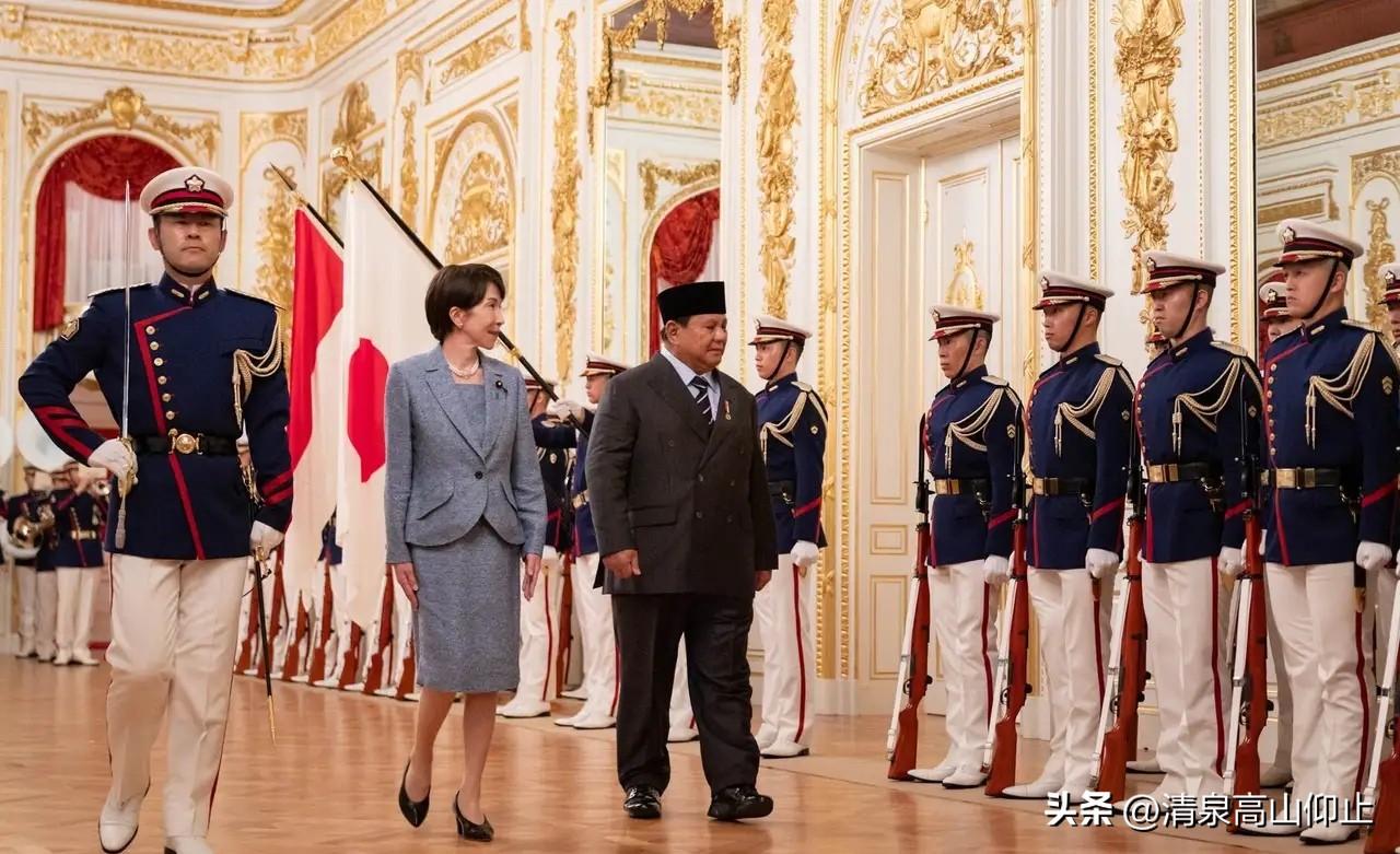 普拉博沃到日本! 印尼总统到了东京,先见日本皇室再与高市举行会谈! 让人诧异的是,防长出身的外形彪悍的印尼总统,在日本德仁面前感觉有点不自在! 与之相反的是,高市早苗在川普跟前的傻白大妞的表现全然不见,在普拉博沃跟前又是一副一本正经的模样,真是店大欺客啊! 高市此前讨好大国领导人,极尽谄媚,又是唱歌又是击鼓,甚至连小国新加坡都赠送吉他背带,可偏偏对G20中唯一东盟国家却表现不过尔尔,场面上的文章! 印尼与日本的互动,无非是为各自在大国及地区博弈中寻找平衡,日本通过印尼互动,取得在东盟中的话语权,以实现地区制衡,印尼借此获得日本的资金与技术援助,实现自身发展,各取所需!