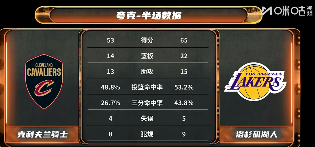半场结束,其实53-65湖人湖人从落后到反超12分,下半场加油!东契奇开场手感不