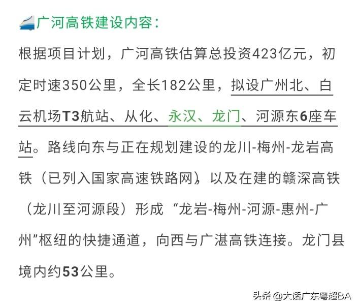 广州从化至惠州龙门的这条高铁应尽快动工。这条新的广河高铁,先行段——白云机场到江