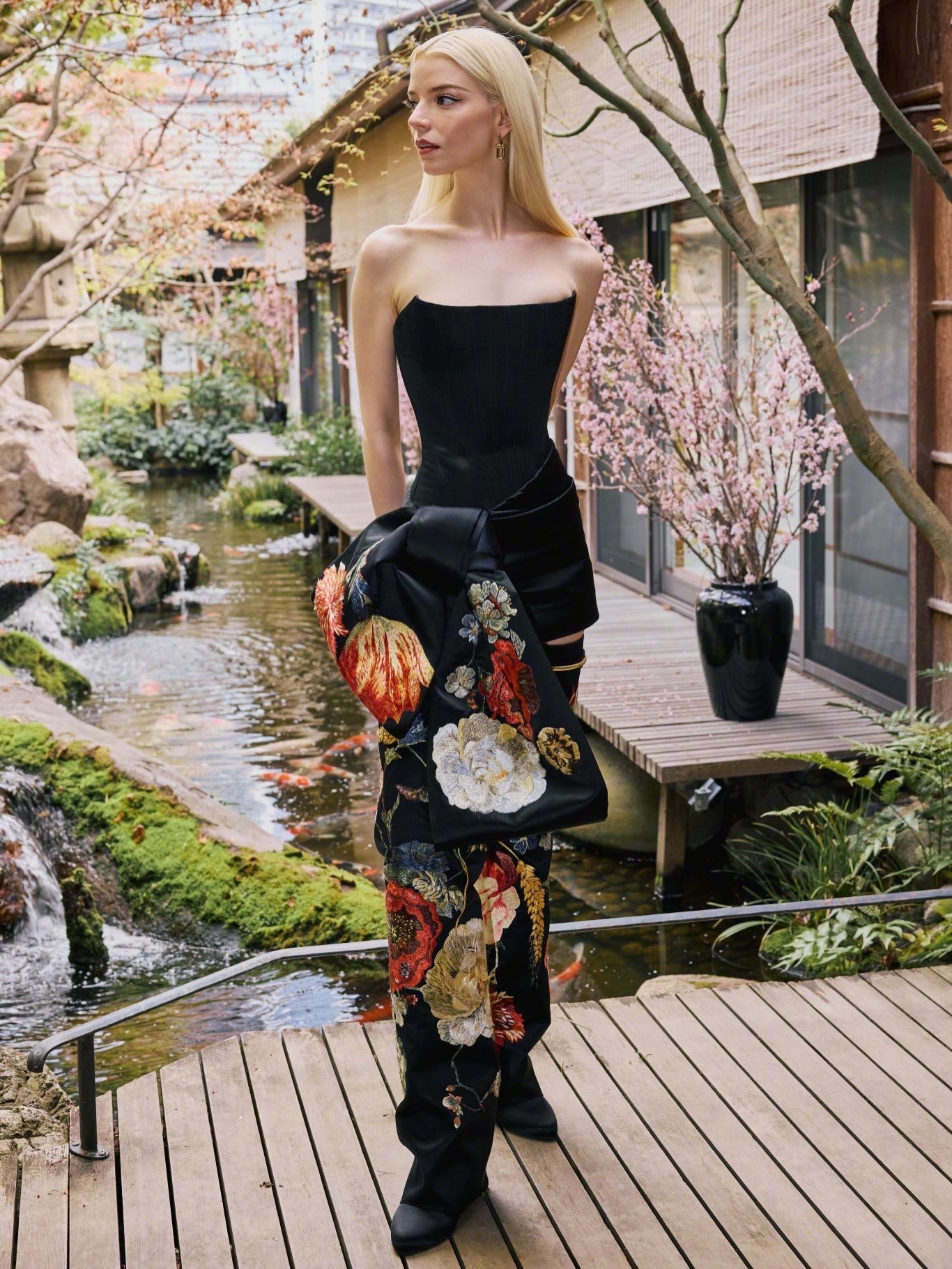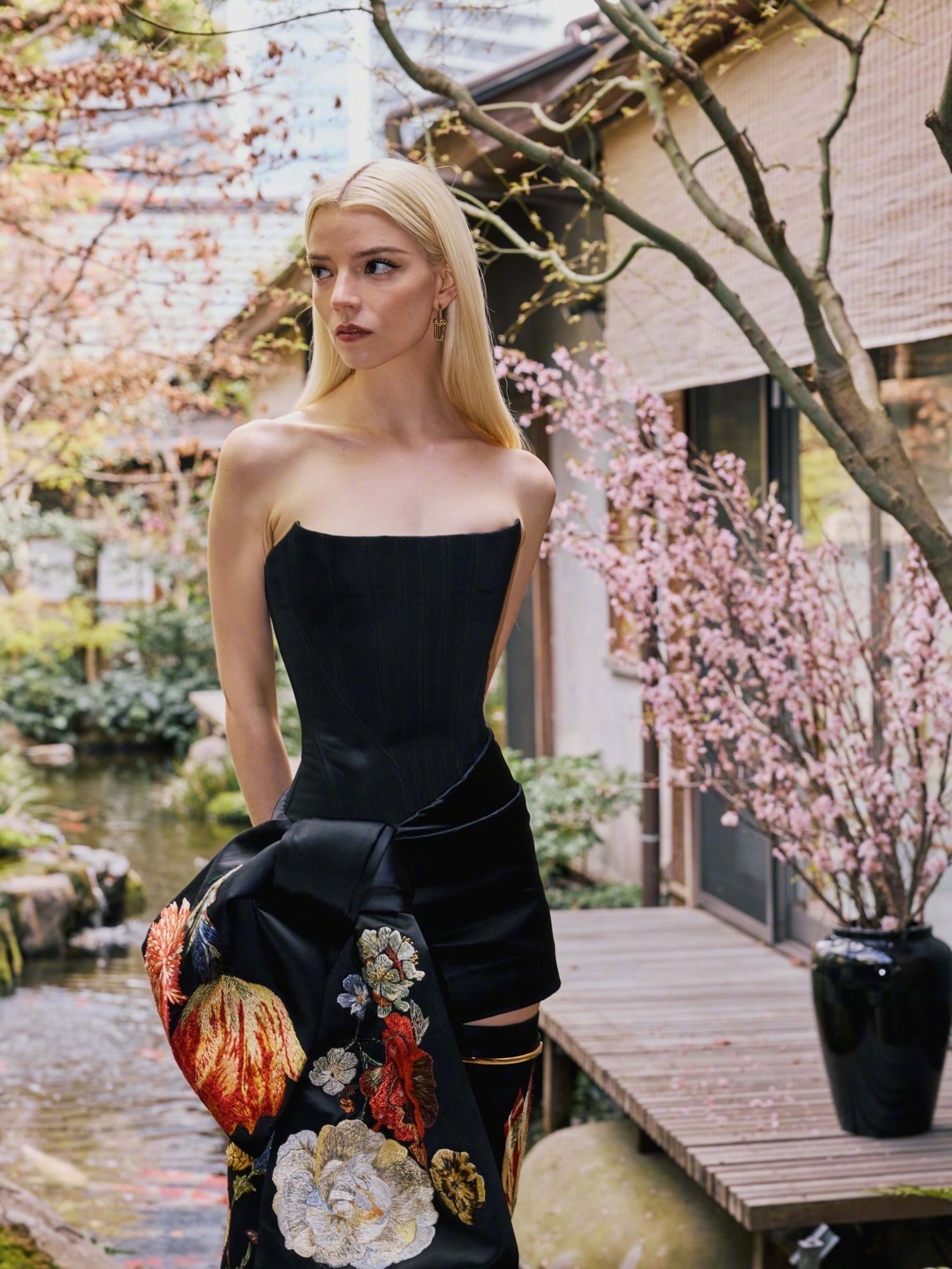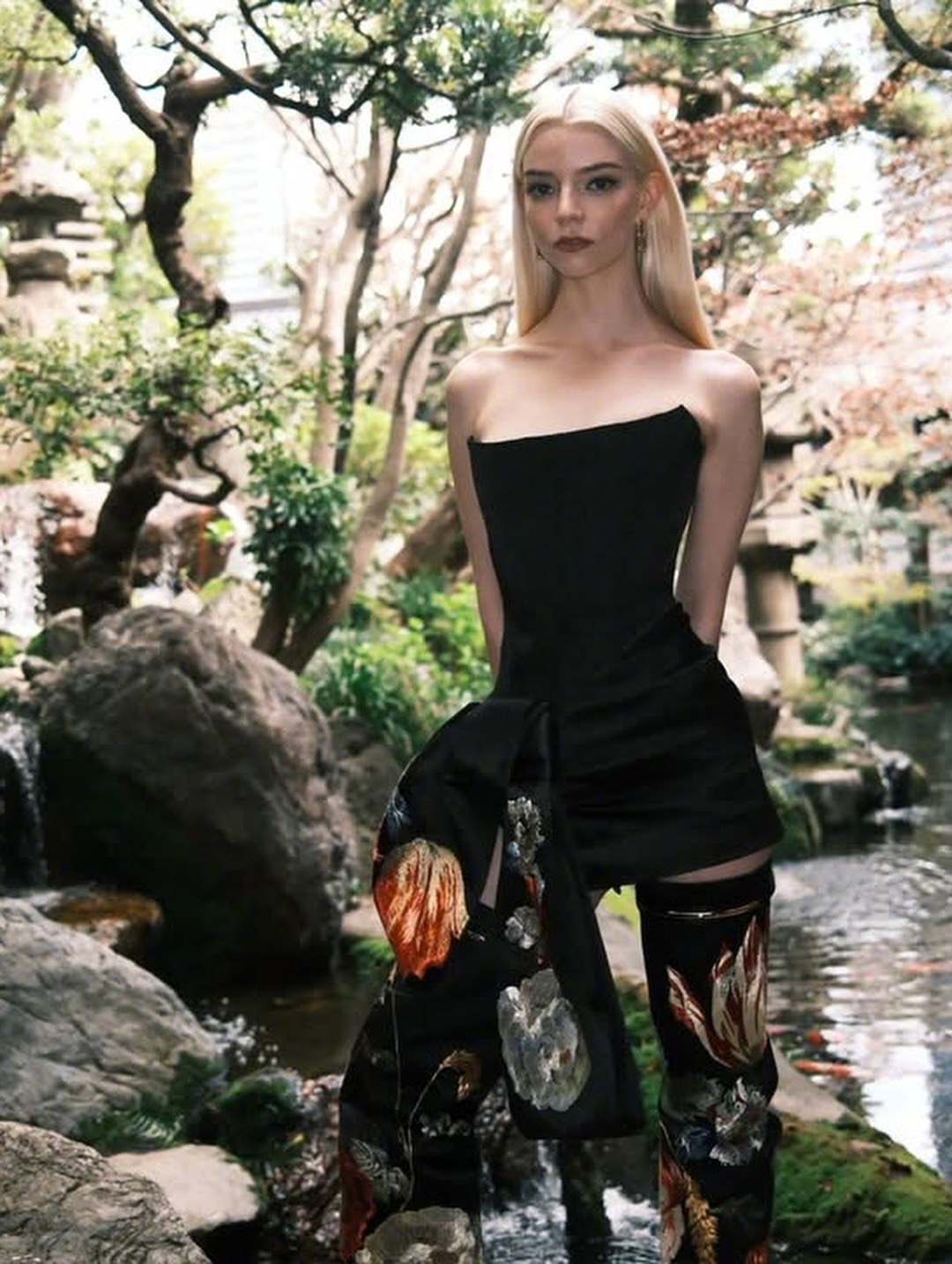 安雅Anya Taylor-Joy 继续日本宣传《超级马里奥银河大电影》,身着由 Sarah Burton 设计的 Givenchy 2026 秋冬系列,一条饰有蝴蝶结细节的抹胸迷你连衣裙,搭配过膝盖的超长靴,靴面带有呼应的花卉刺绣。配搭她的金发别有韵味,很有特色的一身造型。米拉服饰解析