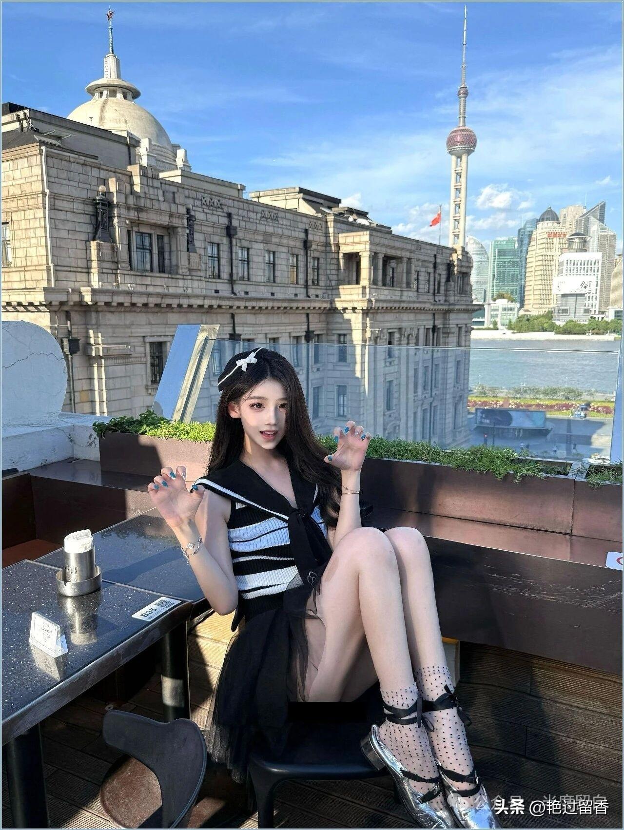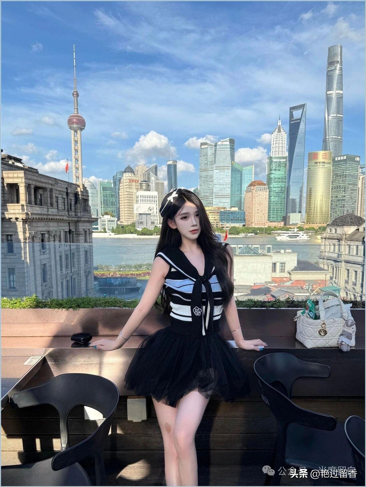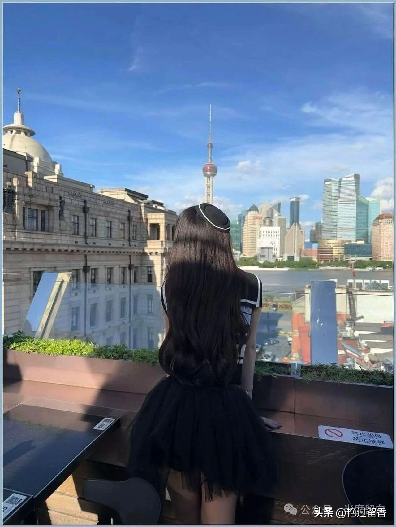 上海外滩的少女,黑白裙摆,东方明珠为背景,复古与现代的碰撞。