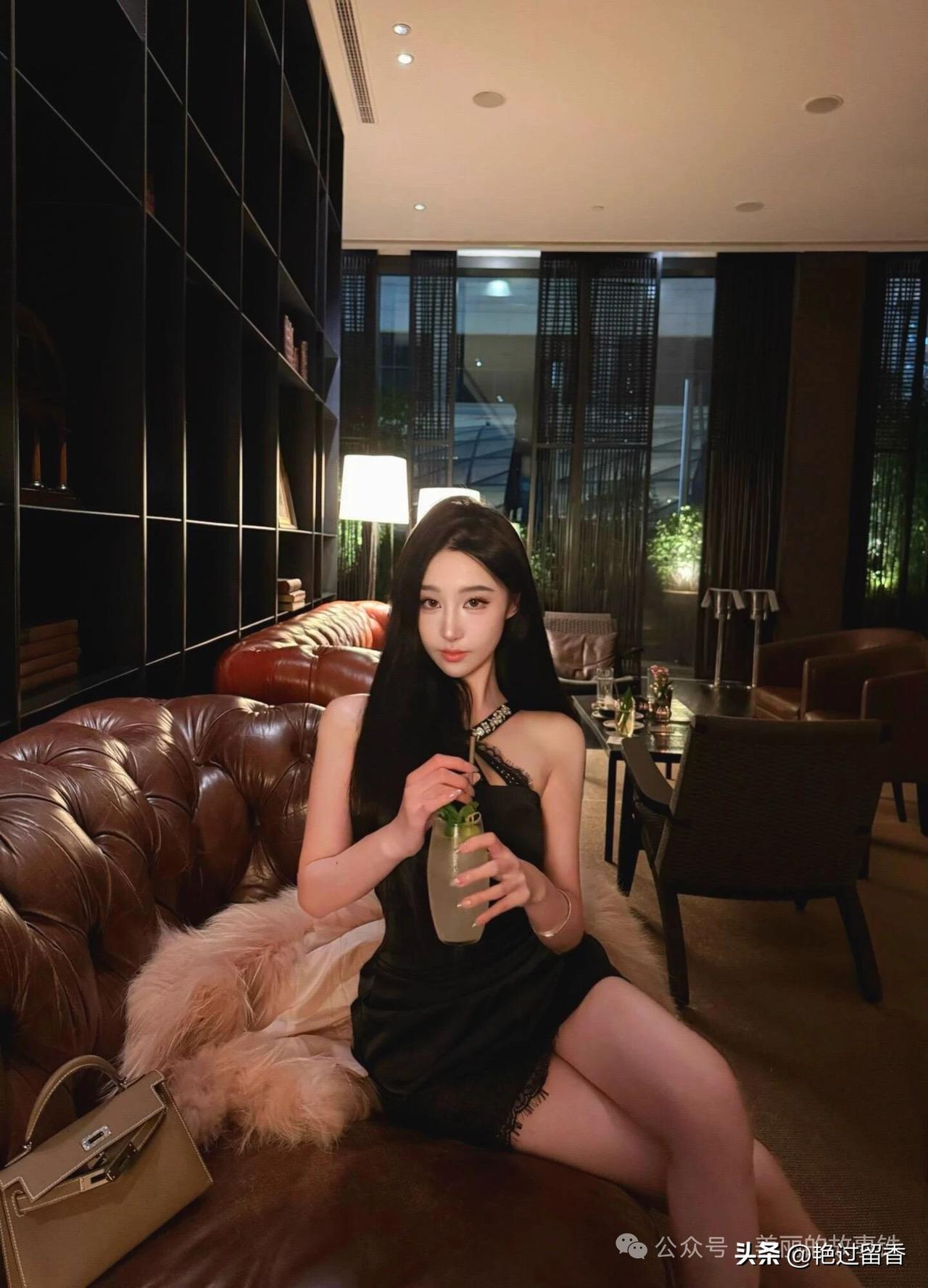 优雅黑裙,奢华酒店,自拍时刻✨