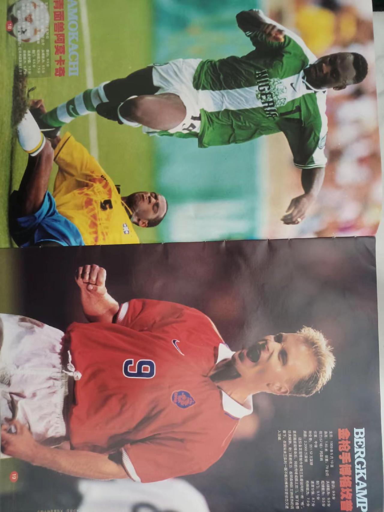 1998年世界杯108将集锦!给大家分享一组个人当年还是小青年的时候购买的《体育世界特刊》之1998年法国世界杯108将集锦精彩靓图。当时世界杯是32强,这本杂志采用双面膜铜版印刷,定价29.8元/本。球星云集,有罗马里奥、罗纳尔多、贝克汉姆、齐达内、希勒、穆勒、皮耶罗、卡洛斯、克鲁伊维特、希曼、苏克尔、博格坎普、巴蒂斯图塔、卡尼吉亚、萨默尔、奥特加、克林斯曼、德塞利、因斯、德约卡夫、马尔蒂尼、恩里克、范德萨、阿方索、德尼尔森、博班、佐拉、西多夫、亨利、西蒙尼、杜加里、贝隆、邓加、耶罗、阿尔贝蒂尼………对于很多70、80后球迷而言,这些不光是足球球星,更是大家的青春啊………熬夜看世界杯,支持喜欢的球队,大呼小叫、鬼哭狼嚎、欣喜若狂或者垂头丧气、破口大骂,人间百态尽在不言中。各位,还记得这些球星吗?