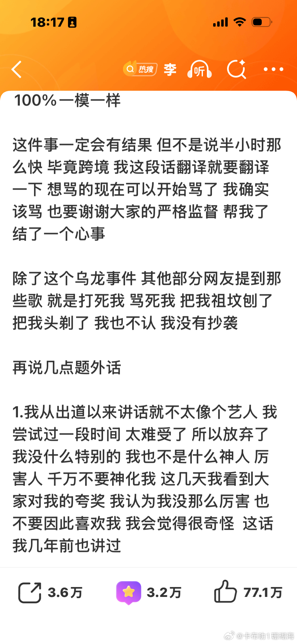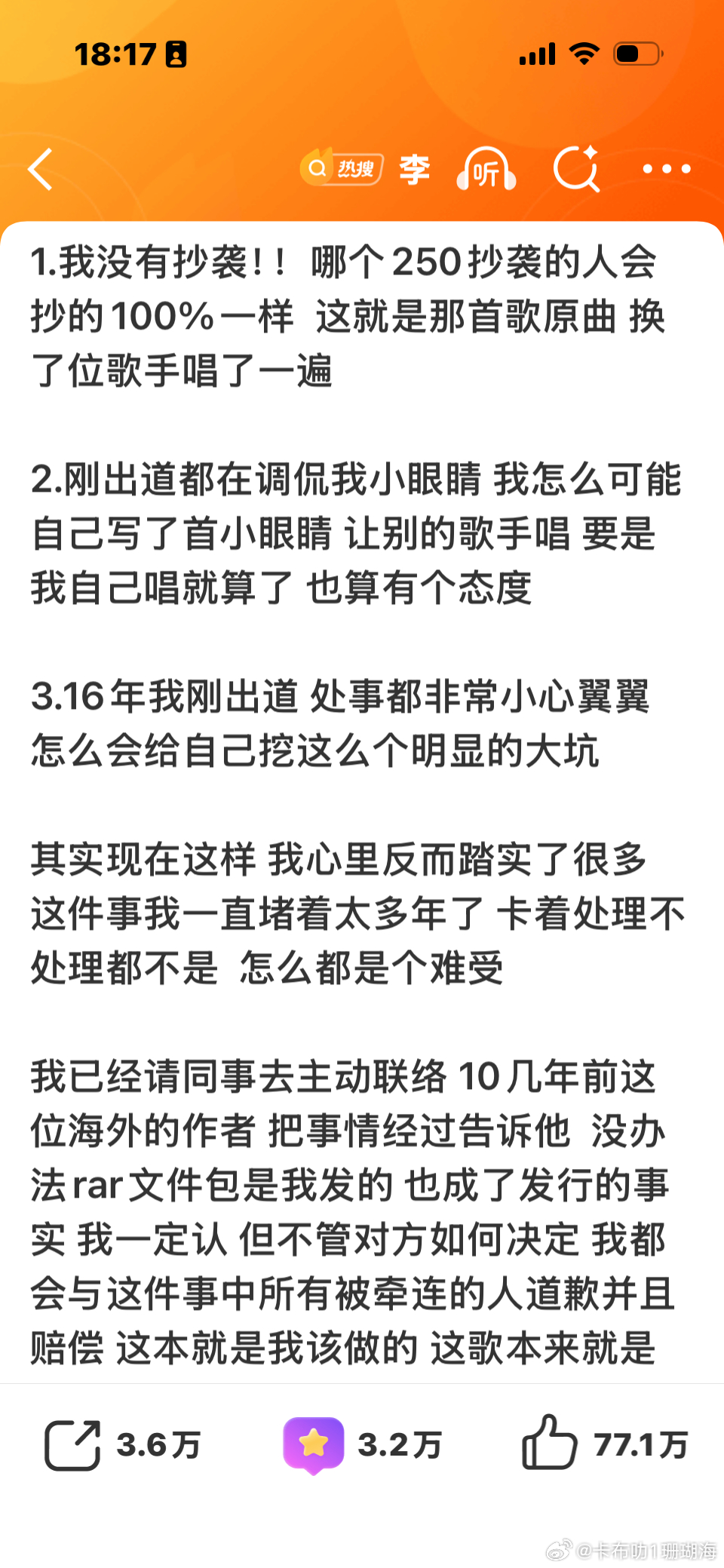 李浩哥回复抄袭的帖子很用心!又多一波路转粉的!感谢这家的宣传哈!真的路转粉,以前对他无感,现在看这哥,真刚!