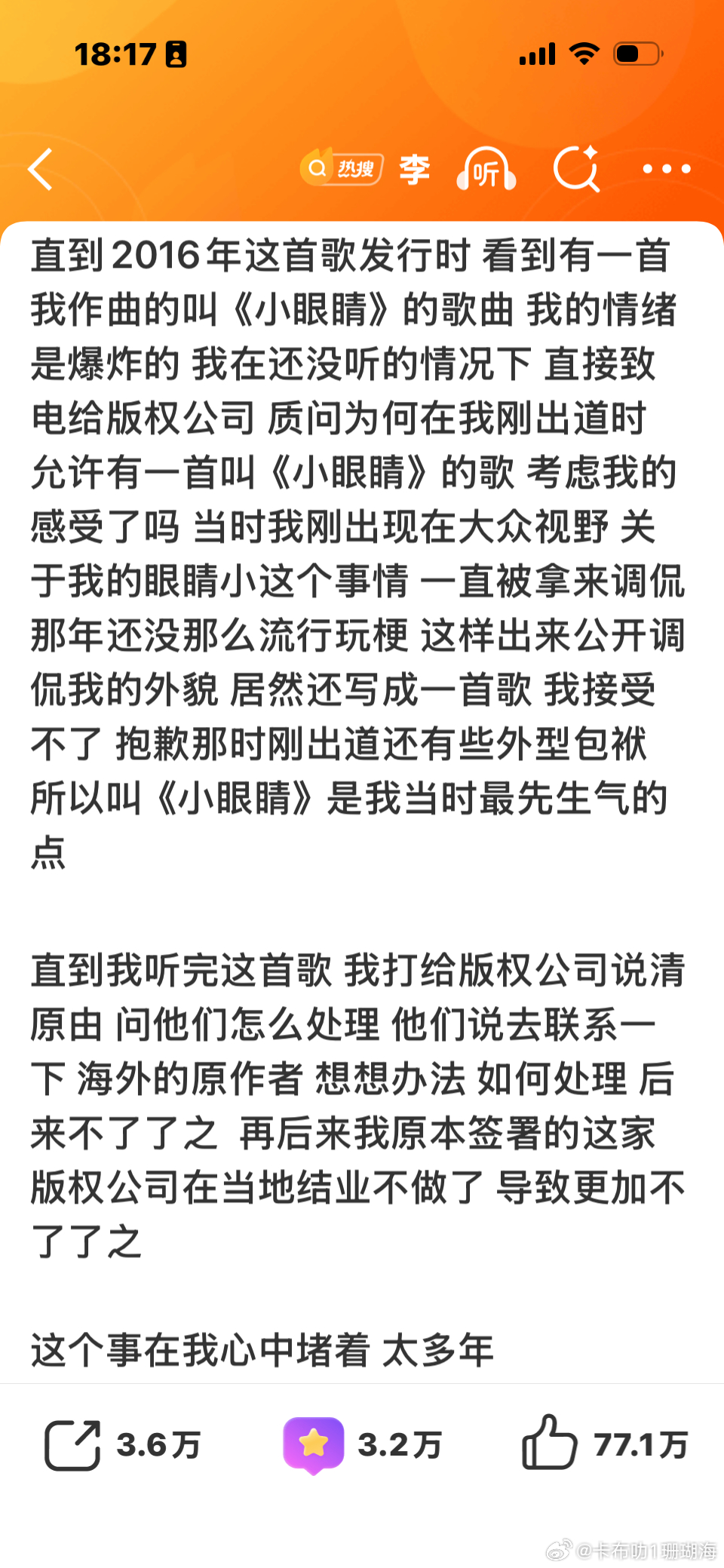 李浩哥回复抄袭的帖子很用心!又多一波路转粉的!感谢这家的宣传哈!真的路转粉,以前