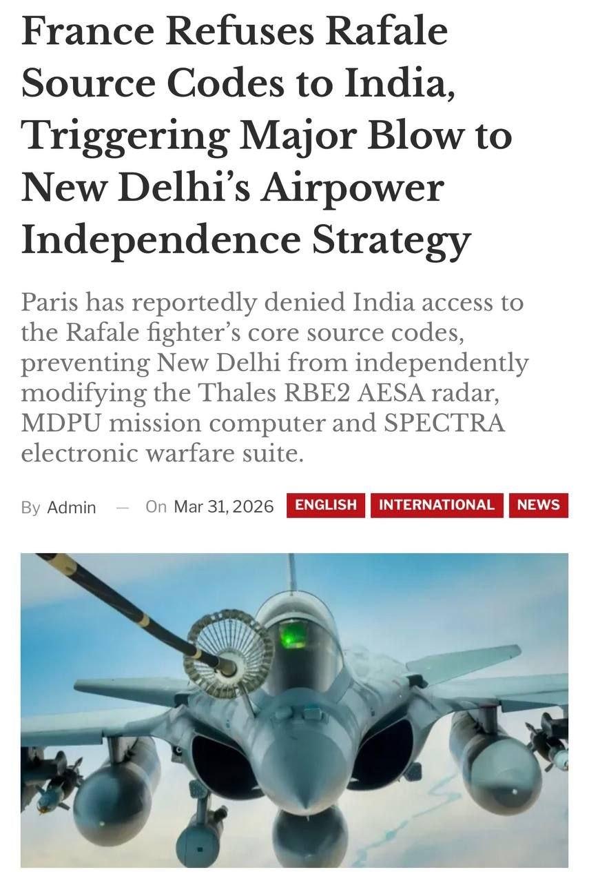 虽然印度花了360亿美元购买了114架“阵风”战斗机,但法国拒绝向印度的RBE2雷达和SPECTRA电子战系统的机密源代码,理由是“巴黎保护其软件主权”。这一拒绝直接影响了印度独立改造关键电子和电子战系统的能力。所谓软件主权可能是假,真正的是法国也不知道印度能搞出什么事情来。