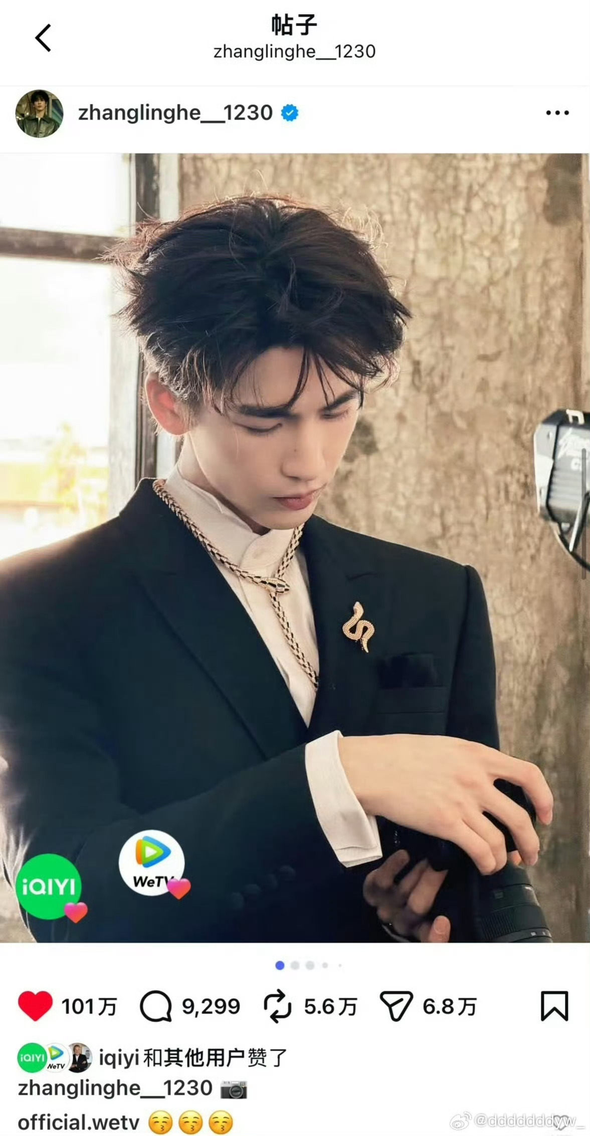 张凌赫发来了新的剧照,凌赫又帅出新高度了而是张凌赫的ins有了一条破百万点赞啦,