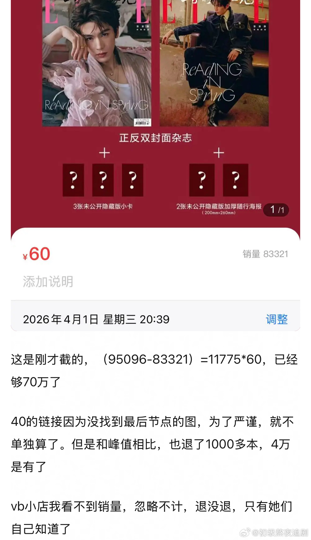 网友说张凌赫杂志单链退了70w?真的假的