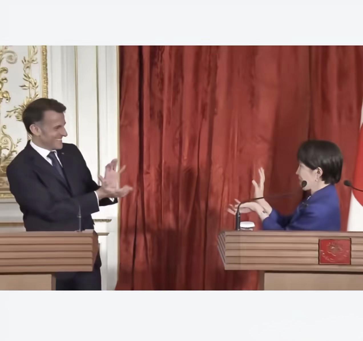 日本首相与法国总统在媒体见面会上的一个动作,火了! 4月1日,日本首相高市早苗在与访日的法国总统马克龙共同出席媒体见面会时,戏剧性地在礼貌握手寒暄后做出一个“龟派气功”的动作,反应迅速的马克龙也做出一个同样的动作回应,于是这一幕不胫而走,火了! 对于这一幕,网友褒贬不一。有人说政治舞台不只有文质彬彬、一丝不苟,也应该有生动活泼、你来我往;有人说这就是高市风格的一脉相承,从对特朗普的“小鸟依人”到韩国APEC会议上的“漂亮转身”,高市在国际外交场合打上了她独有的印记。 其实呢,最近日本外交很热闹,美国德国加拿大法国都来了,包括新加坡、印尼、韩国也都到场,好一个“春意盎然”!