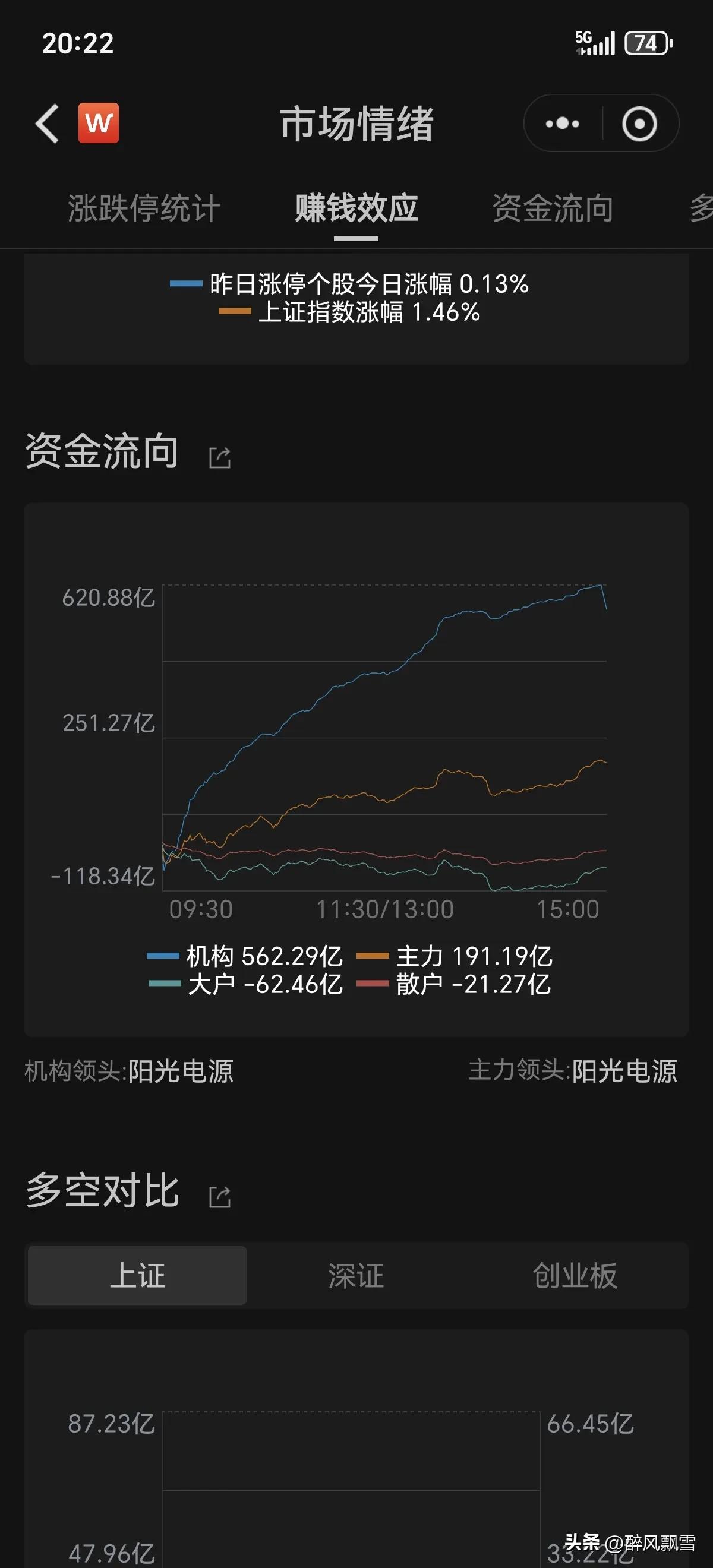美收盘 大A高开防回落,短线勿追高。 美股三大指数全线收涨,纳指领涨1.16%,中概金龙指数小幅回升0.31%,外围情绪偏暖。 A机构与主力资金大幅净流入,大户散户净流出,呈机构主导的普涨格局。昨日涨停溢价仅0.13%,短线连板情绪低迷,资金扎堆赛道权重,多方力量占优,后续宜跟随机构主线低吸趋势标的,谨慎追高短线题材。