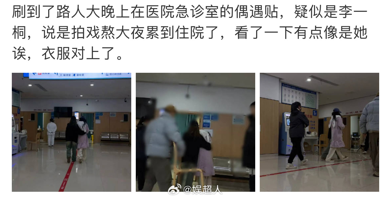 曝李一桐深夜进医院 李一桐熬夜拍戏进医院了…网友偶遇了李一桐深夜现身医院,甚至需要人搀扶着才能走路。这是什么情况?桐姐要注意身体哇网友医院偶遇李一桐