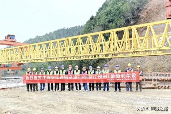 好消息,江西通铜高速公路新进展,T3标段戴家湾大桥首片T梁架设完成。 近日,在通铜T3标戴家湾大桥架桥现场,随着T梁安全、精准落至台座,首片40mT梁成功架设,标志着该桥正式进入上部构造施工阶段。 戴家湾大桥位于修水县东港乡岭下村戴家湾组附近,全长569m,桥宽12.55m,是通铜T3标的重要节点工程。