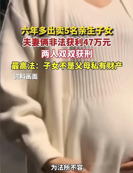 “必须严惩!”一对夫妻为了钱, 在已有多个孩子的情况下,6 年多内又接连生下5个孩子,并把这些孩子转手就卖给别人,根本不考虑孩子们的安危,就这样非法获利47万元,最后两人双双获刑并被判处罚金!网友:不配当父母! 这对夫妻男的叫李某会,女的叫张某荣。他们自己本来就有好几个孩子。可他们没想着好好养家,反而动起了歪脑筋。从2016年10月到2023年3月,整整六年多,他们像完成一项“生产任务”一样,接连怀孕、生育。 孩子一生下来,他们看都不多看一眼,心里盘算的只有能卖多少钱。他们根本不在乎买孩子的人是谁,会不会对孩子好。五个亲生骨肉,就这样被他们明码标价,一个一个卖了出去。前前后后,他们靠卖孩子赚了47万块钱。 2026年4月2日最高人民法院发布了这个案例,法院认定他们的行为就是拐卖儿童罪。丈夫李某会主意大,是主犯,被判了十一年六个月,还要交六万块罚金。妻子张某荣跟着干,是从犯,被判了五年,罚了三万块。 这哪里还是父母?这分明是把子宫当成了生产线,把孩子当成了商品。生命在他们眼里,成了可以兑换钞票的货物。这种冷血和算计,彻底玷污了“父母”这两个字最神圣的含义。他们出卖的不仅是五个孩子,更是为人最基本的良知和底线。 让人揪心的是那五个被卖掉的孩子。他们现在在哪里?过得好不好?有没有人疼?幸运的是,法院没有只判刑就了事。他们积极协调了民政、学校这些部门,给这对夫妻其他还没成年的孩子确定了临时监护,发放了补助金和助学金。还有志愿者定期去看望、回访,尽力减少这件事对孩子们的伤害。 这个案子被最高法当成典型发布,意义很深。孩子不是父母的私有财产,绝对不允许任何形式的人口买卖。不管什么理由,卖儿卖女都是踩踏法律红线、践踏人伦底线的重罪。它也在提醒社会,光打击犯罪不够,还得有严格的政策保护那些无辜的孩子。 父母之爱,本该是孩子来到这世界收到的第一份礼物,可在这对夫妻这里,却成了刺向孩子的第一把刀。法律给了他们应有的惩罚,但五个孩子被“定价”出售的人生,那份创伤又该如何弥补? 各位读者你们怎么看?欢迎在评论区讨论。