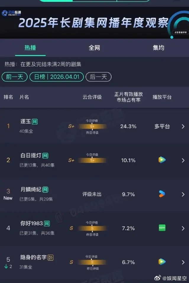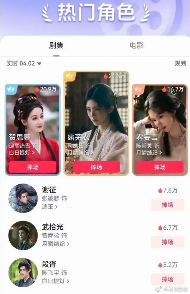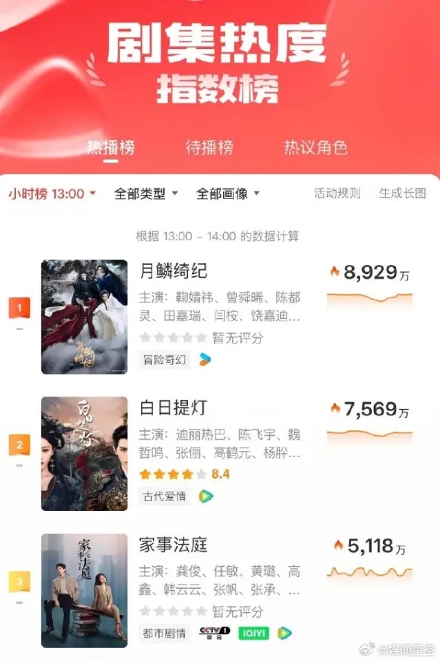 鞠婧祎《月鳞绮纪》首日云合9.7%《月鳞绮纪》首日云合比迪丽热巴《白日提灯》要高,首日云合播放量破2000万,空降高开,几乎各类热度和角色榜单都超过了《白日提灯》,《月鳞绮纪》和赵露思当初的《许我耀眼》一样,营销上很有优势,开播遇到了女主角解约官司关键期,节约风波,税务风波给艺人本身以及这部剧带来了远超往日的关注度。