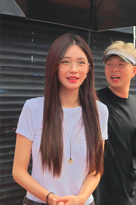 戴上金丝眼镜后的她化身高知御姐,有高启兰的味道在里面,而在街头小吃摊前面拍摄的那张照片则更像夏日游玩的富家千金,看起来高高瘦瘦,又香又软。