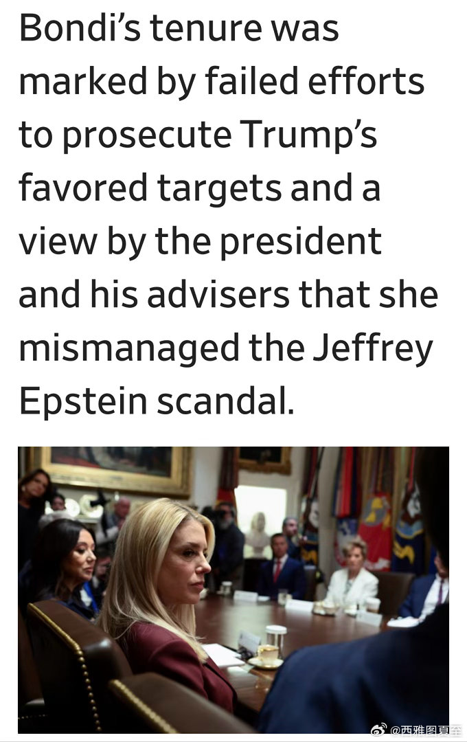 美国司法部长被解职,由副部长暂时代理总统的不满,主要源于:Epstein档案相关