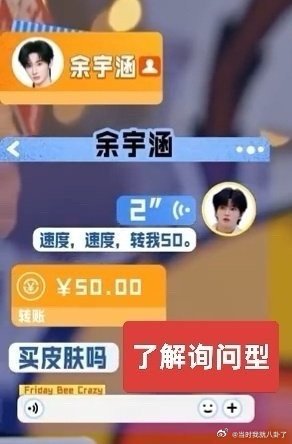 余宇涵问穆祉丞买皮肤吗 余宇涵一句“转我50” 穆祉丞“要买皮肤吗” 哈哈哈哈