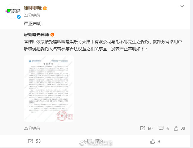 【哇唧唧哇否认解约毛不易】近日,网传和哇唧唧哇已解除经纪合约。4月3日,随后转发该声明。