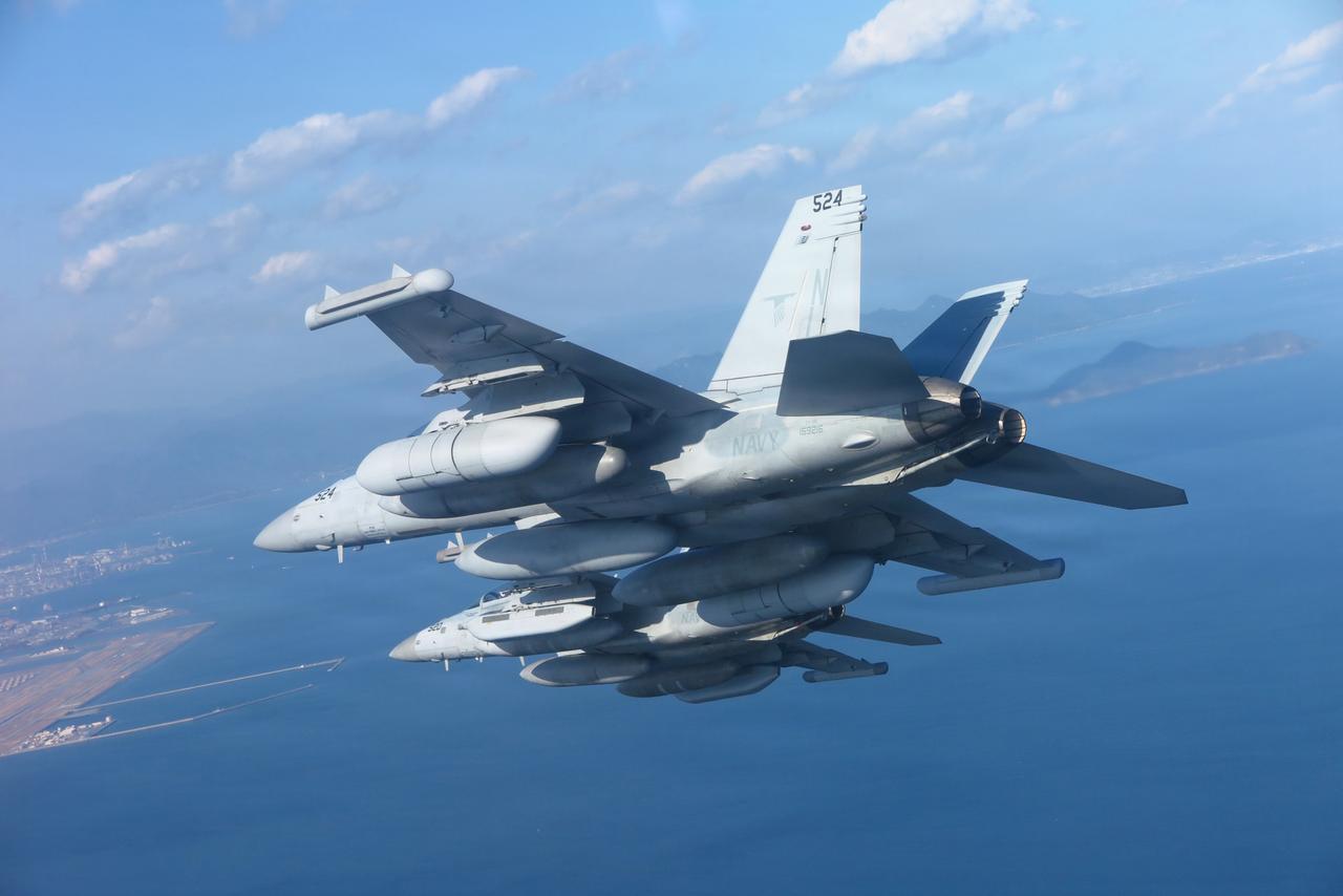 美国海军第135电子攻击中队(VAQ-135)“黑鸦”中队的EA-18G“咆哮者”电子战机,正与隶属于日本海上自卫队第81海上监视中队(VQ-81)的OP-3C“白羊座II”侦察机开展双边演习。