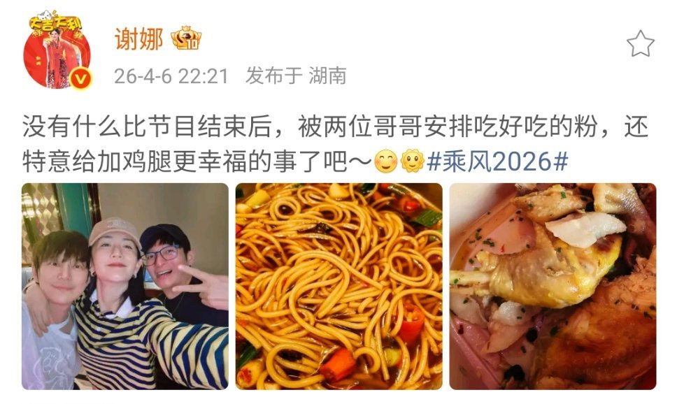 谢娜晒和何炅维嘉合照谢娜晒和何炅维嘉合照,娜姐说何老师和维嘉还给加了鸡腿!好令人