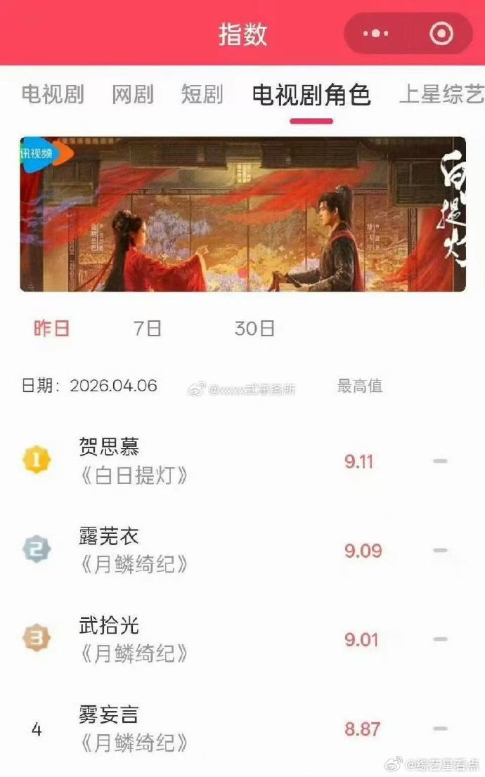 流量明星演的剧集,尤其是涉及群戏的,总会出现统计演员时长的事情,《月鳞绮纪》也出