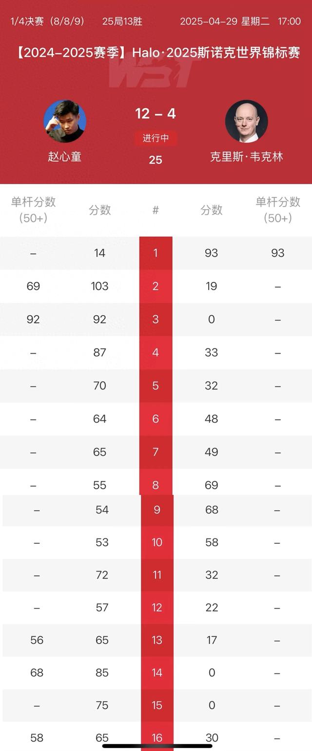 赵心童昨日凌晨2点,第二阶段的比赛,第1局双方都是各自失误不断。你来往往各种不进。好在赵心童在先负两局的情况下六连鞭12-4率先拿到赛点。昨天的比赛明显感觉到维克林的全场不自在。对赵心童的准度打不会了。赛前我一直认为这场比赛会很精彩。维克林本年度的比赛打得还是非常好。世锦赛赢罗伯逊,赢马克艾伦,看了他的比赛,前两场的比赛状态非常好,包括之前的中国玉山公开赛也是打得非常好,赢了丁俊晖。我一开始认为他跟赵心童的比赛一定会很激烈,没想到昨天直接被赵心童特响袋打慌了[捂脸][捂脸][捂脸],一下子不会了,打懵了。赵心童离晋级四强,只差一步之遥。他的下轮对手是奥沙利文和斯家辉的胜者。期待他更好的发挥。