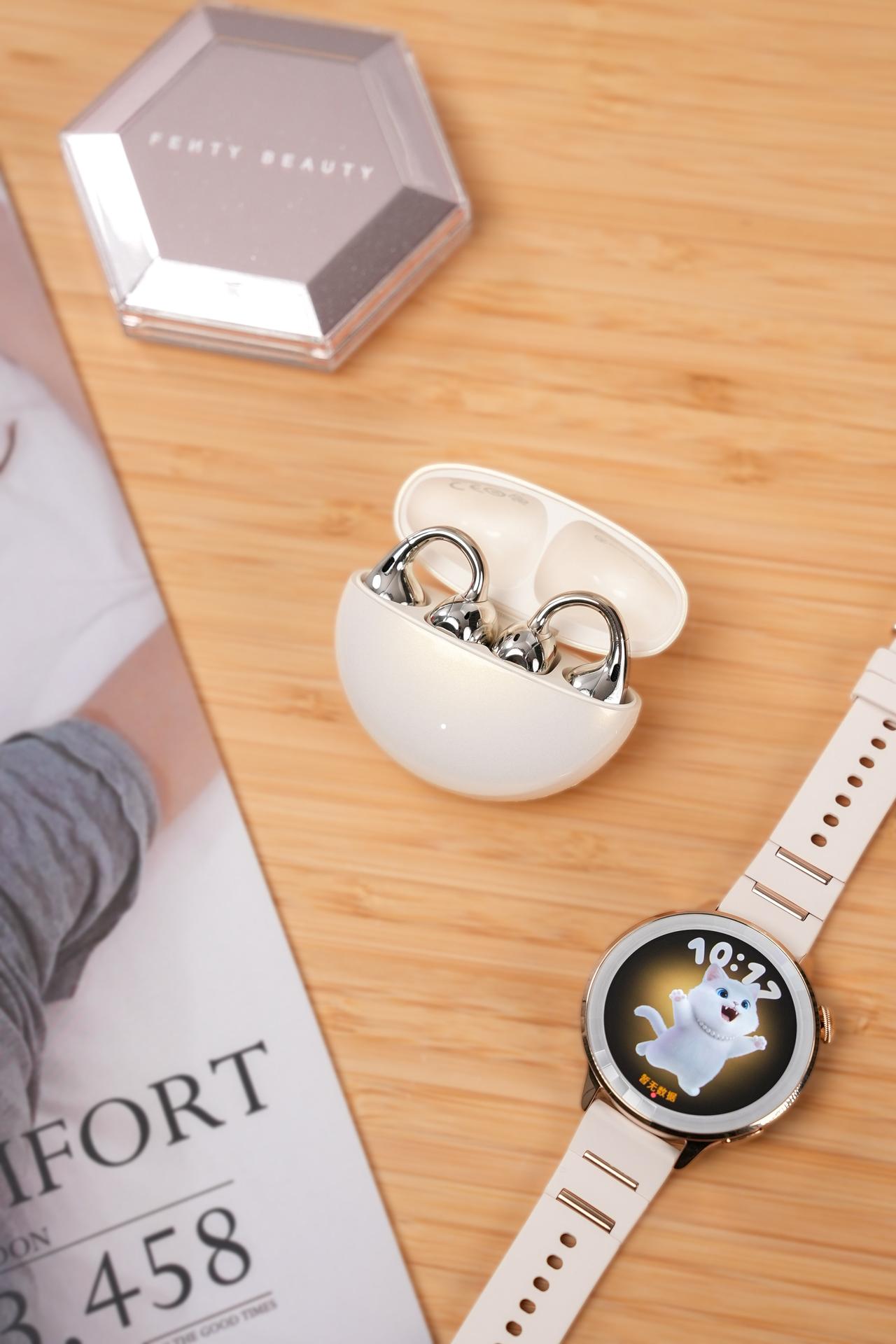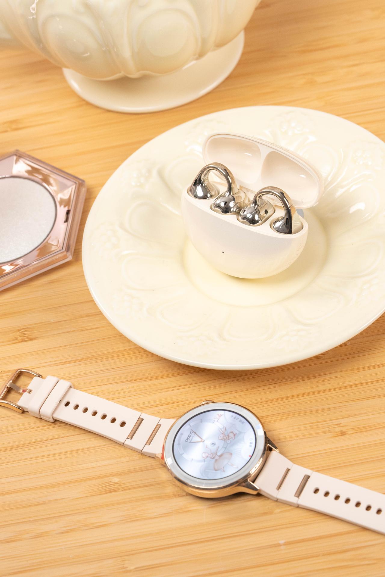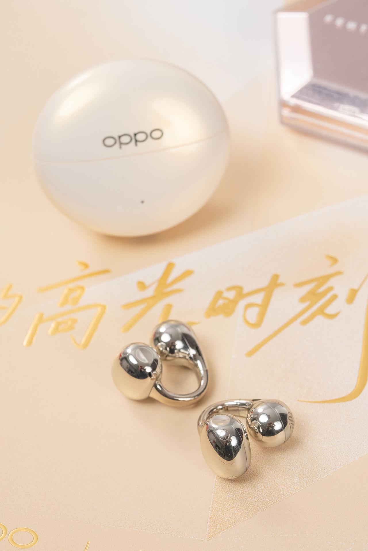 就连这次的新款耳机 OPPO Enco Clip2,也同样用上了这种 blingbling 的超闪小金环设计,重点是戴了一天下来,耳朵居然不怎么累,音质更是丹拿调音,听感很稳,而且还跨生态适配了果子,颜值与实用性双双在线。