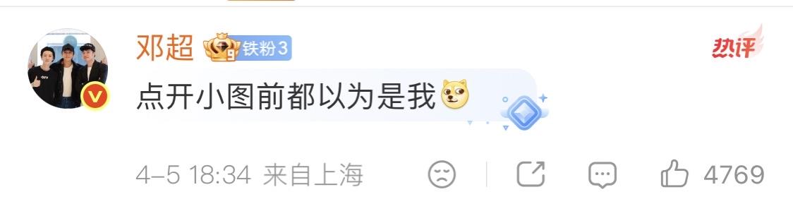 邓超留言看到照片小图还以为是自己呢,文艺哀伤气息一下子就没了。