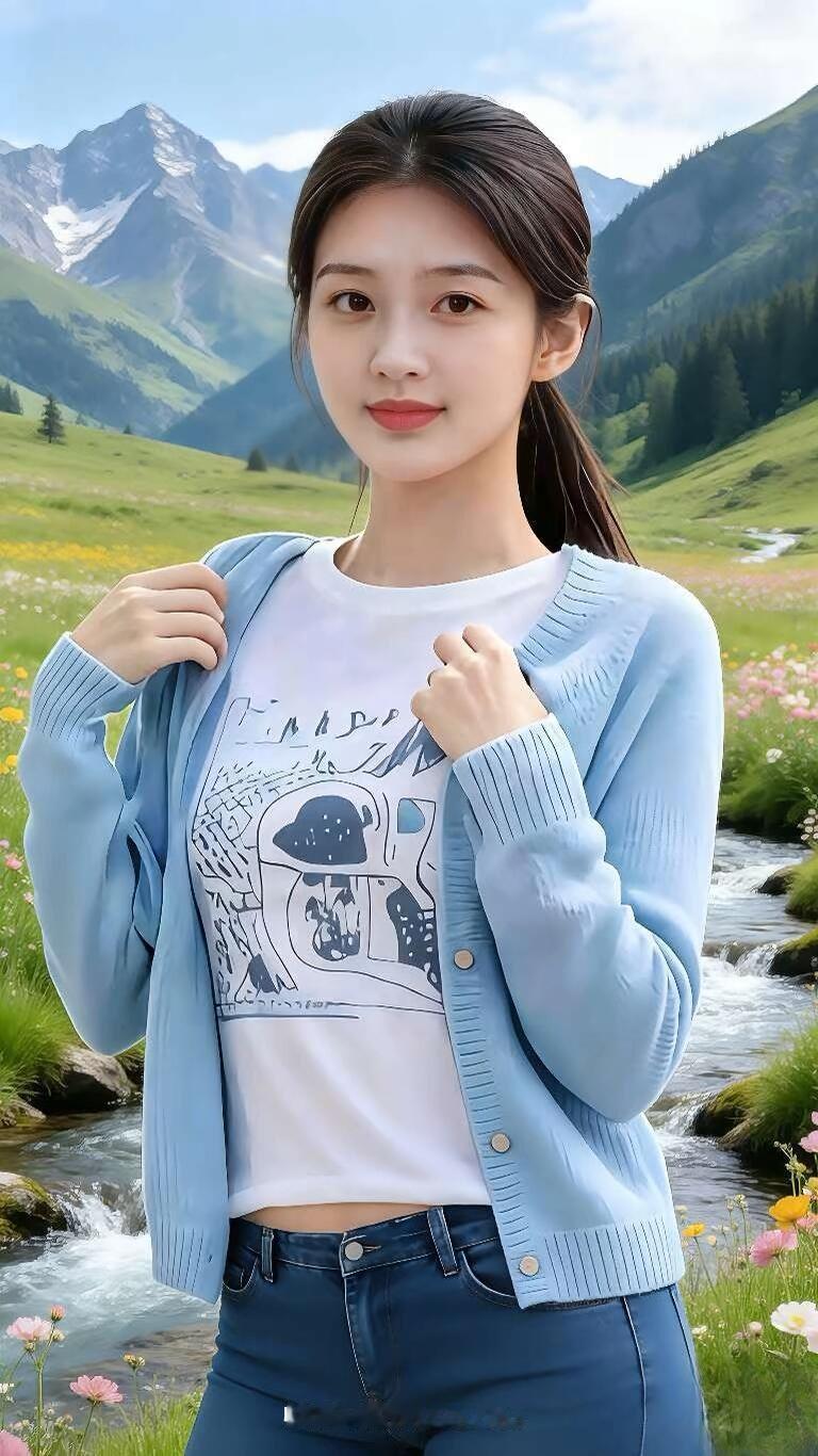 夏日清新少女,绿意盎然背景,甜美笑容,自然妆容,优雅发型,清新自然,少女心满满。