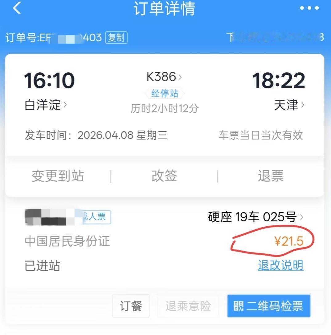 坐铁路特快,快车确实便宜啊!昨天从白洋淀到天津120多公里的路程才21.5元,只是体验感确实不如高铁好。