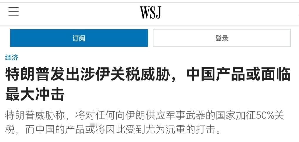 美媒警告称,中国有麻烦了!4月9日,美国华尔街日报刊文表示,特朗普威胁称,将对任何向伊朗供应军事武器的国家加征50%关税,而中国的产品或将因此受到尤为沉重的打击。如果美国总统特朗普将与向伊朗提供武器相关的关税威胁付诸实施,从中国进口的商品可能面临新关税。