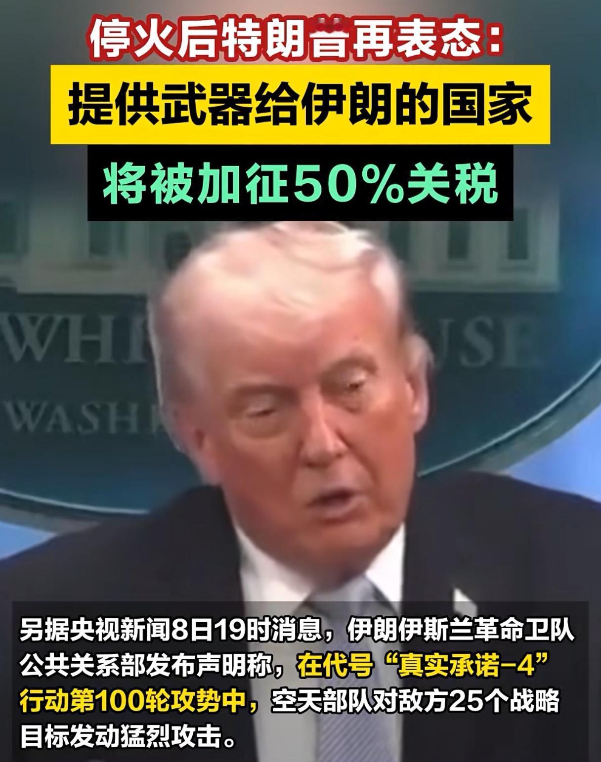 特朗普直接放话,任何给伊朗提供武器的国家,向美国出口的所有商品,都要立刻加征50%的关税,没有任何例外和豁免。