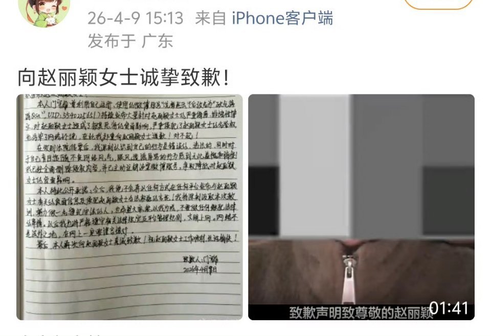 赵丽颖告黑了,黑粉手写道歉信并录制视频道歉!!!这个好像是当抽中赵丽颖代言的品牌签名照还挑衅丽芬说去告我,结果被注意到直接上被告席了