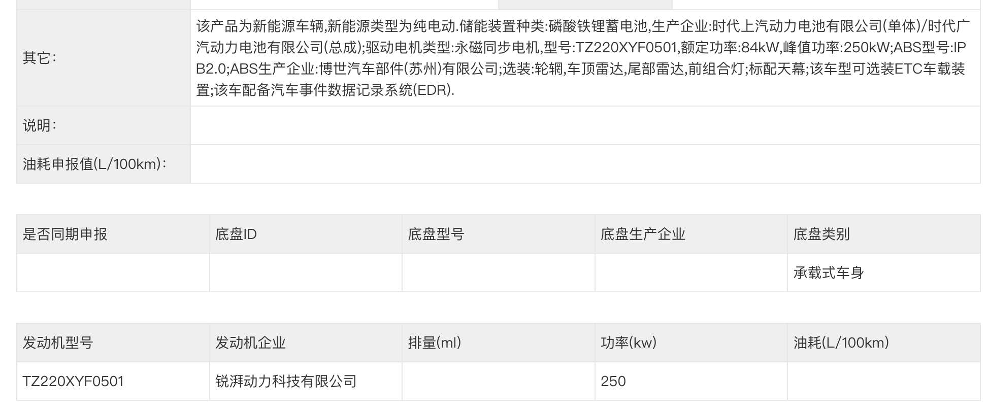 这次申报的启境GT7仅有一款后驱车型,采用锐湃动力的250kW电机、额定功率84kW,搭载宁德时代的磷酸铁锂电池。新车预计在6月正式上市。