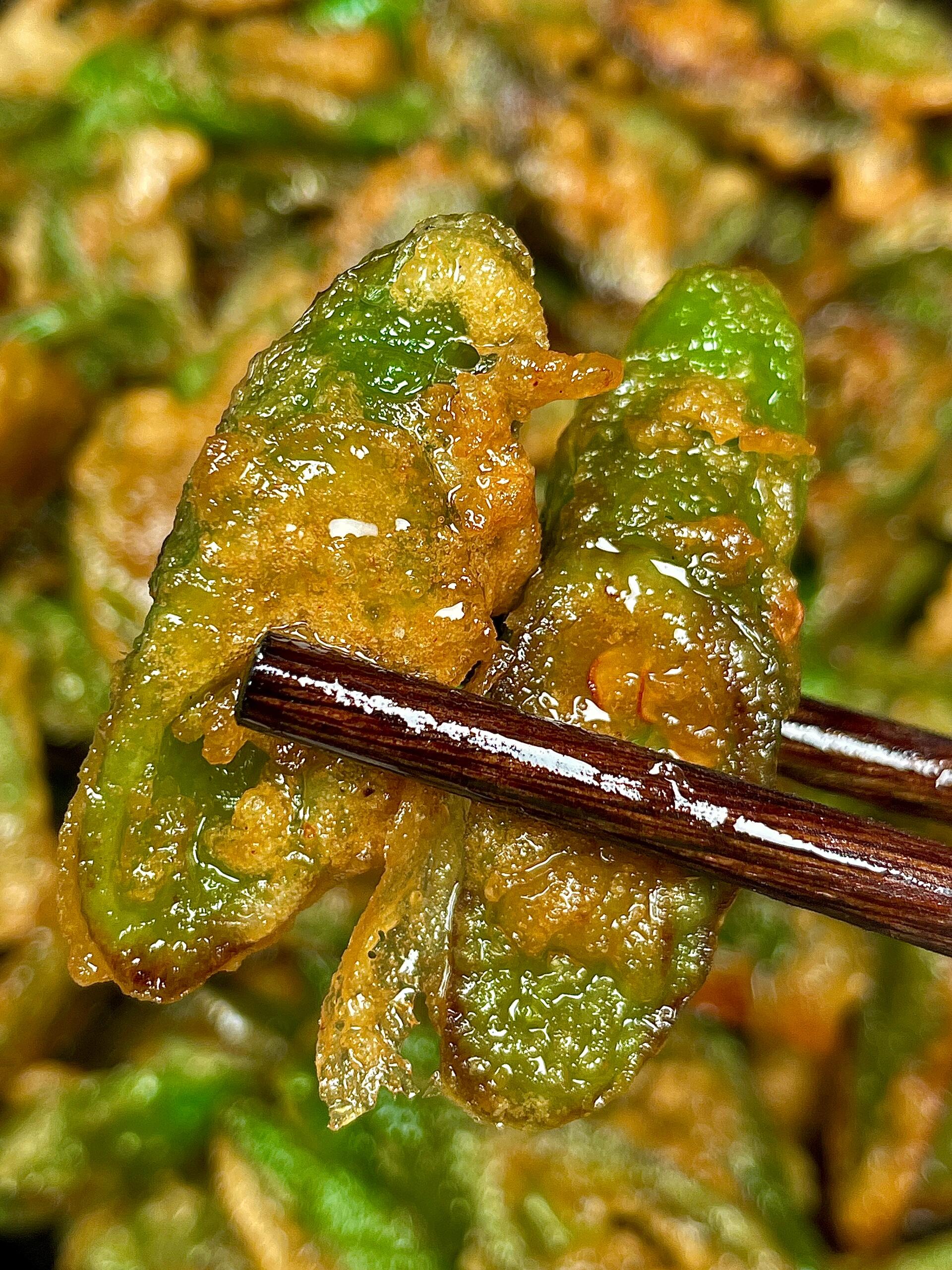 先处理线椒。线椒要选新鲜的,颜色翠绿,捏起来硬挺的那种。洗干净去掉蒂,切成小段——不用太细,一厘米左右的圈就行,这样吃起来有口感。切好的线椒放进大碗里,开始调味。加半勺十三香,十三香的复合香味和线椒特别搭,是这道菜的隐藏秘诀;再加两勺玉米淀粉,淀粉能让煎出来的蛋饼更酥脆,外皮焦香;然后打一个鸡蛋进去,加一勺生抽提鲜。用筷子搅拌均匀,让每一段线椒都裹上蛋液和淀粉。这时候的糊糊不能太稀,要能挂在辣椒上——如果觉得太干,可以再加一点点水;太稀,就再加点淀粉。调好的糊糊绿中带黄,看着就香。