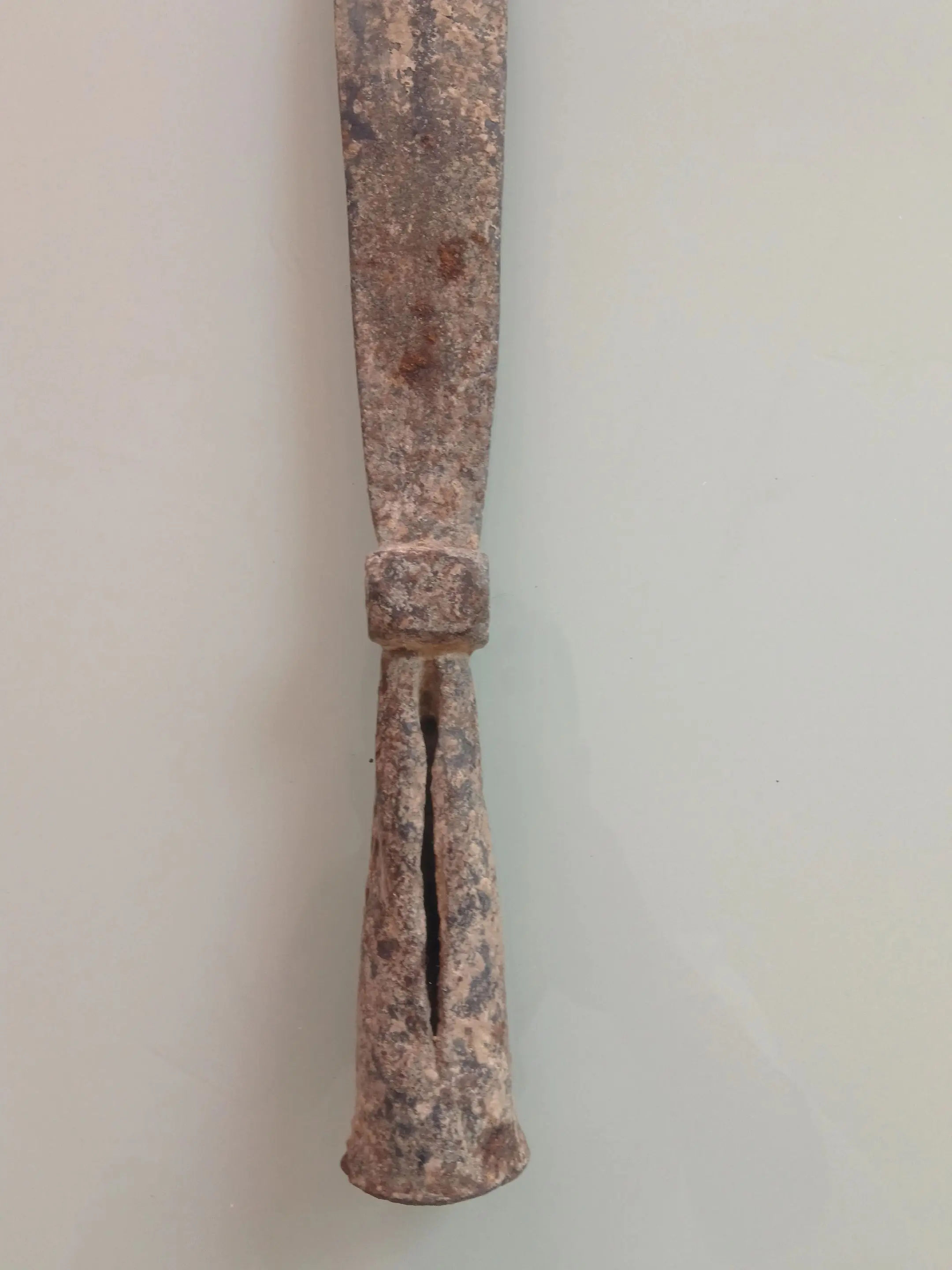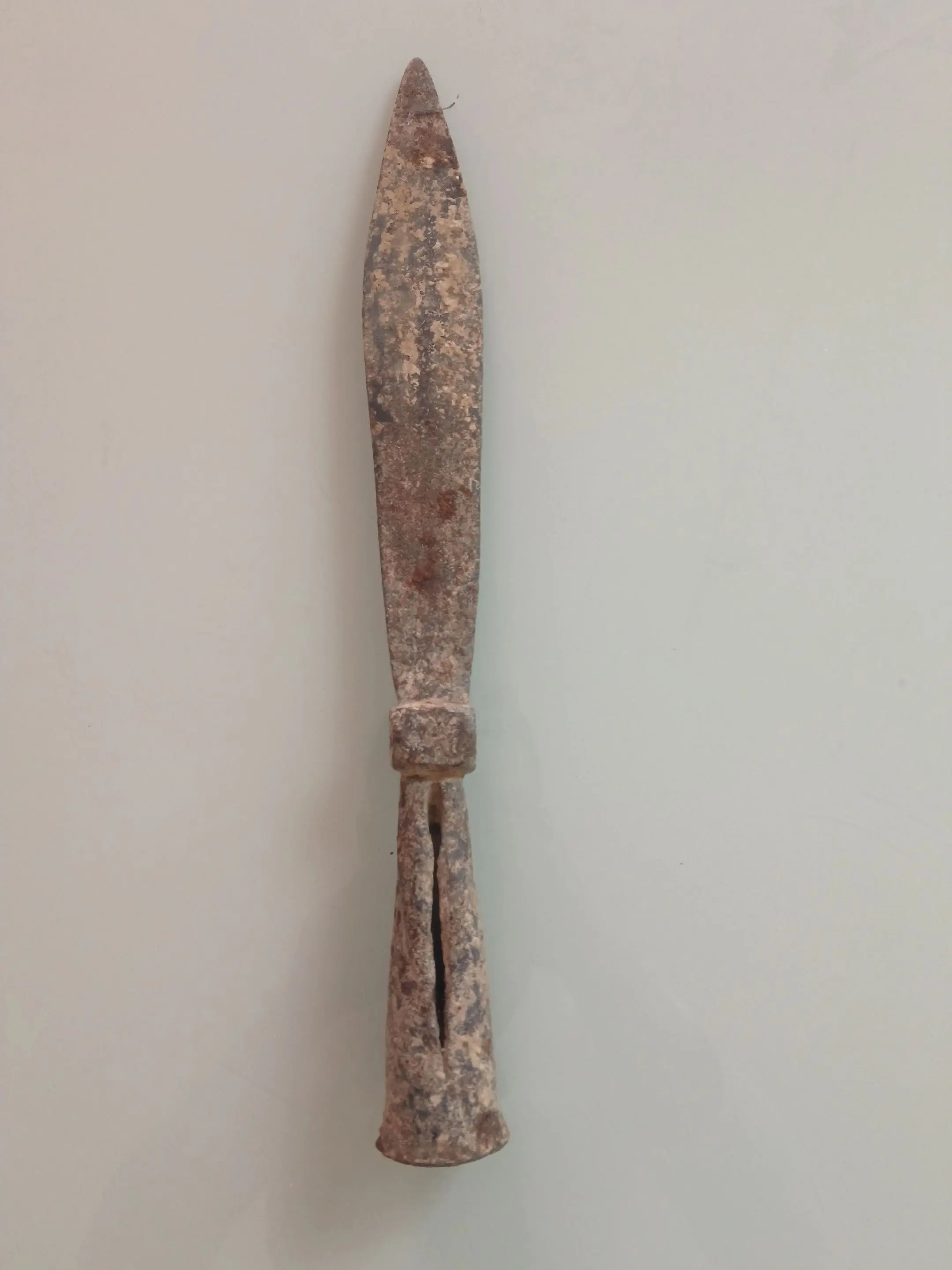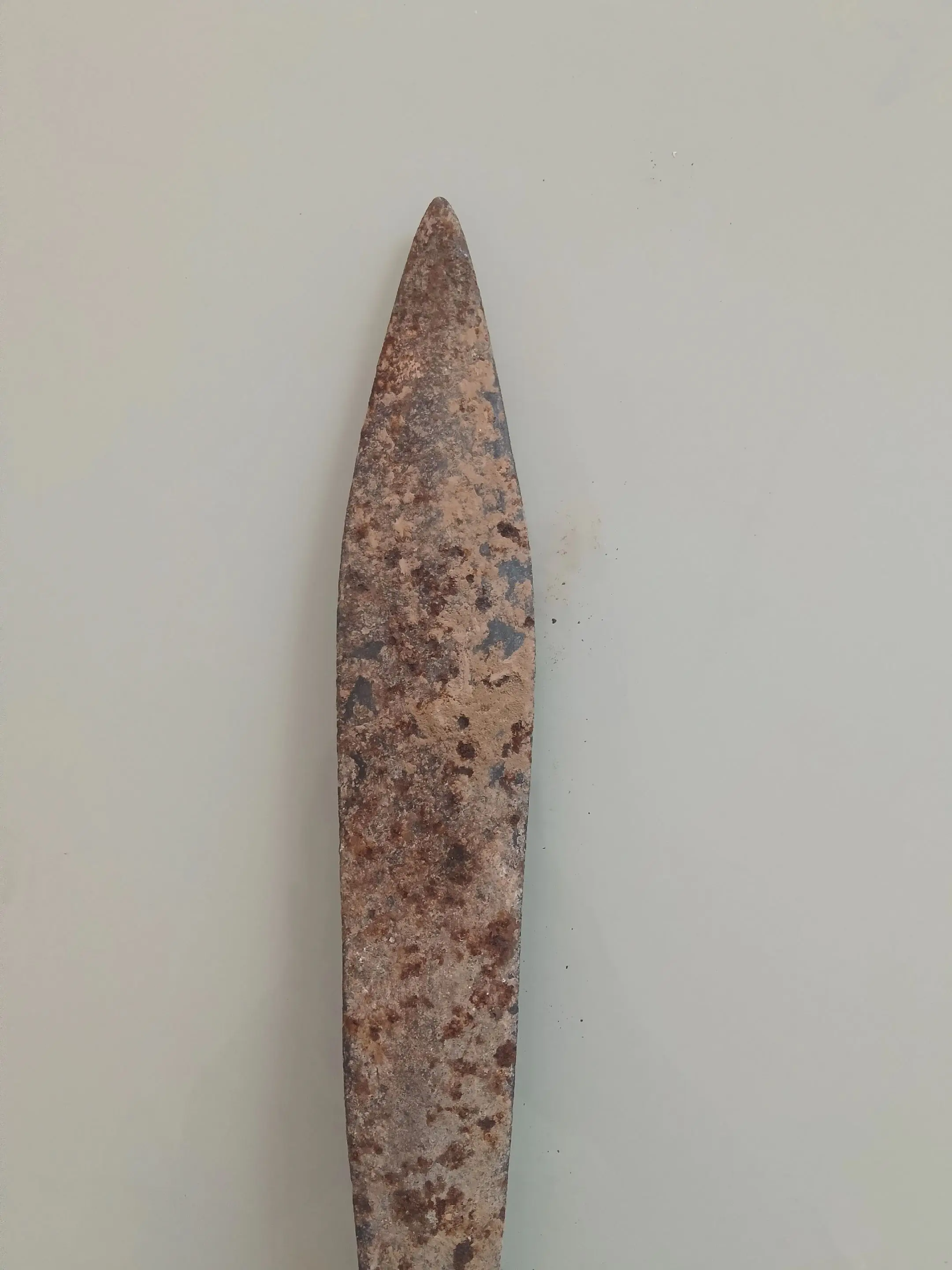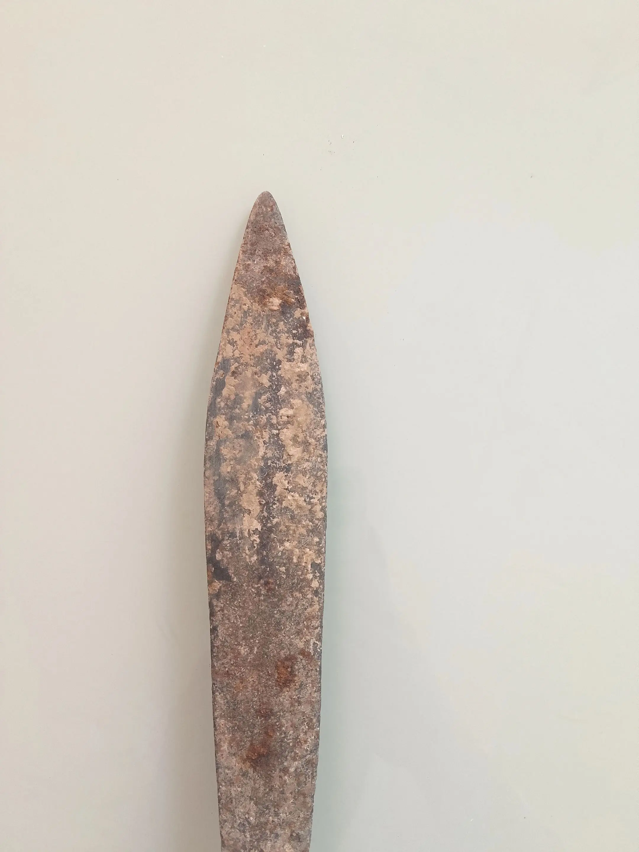 清末长矛真品。老长矛一个,单矛头,感觉是清末时期的、材质不清楚,整体保存还行,有点旧痕,实物看看图。