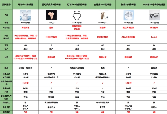 说实话,买助听器不对比一番真的容易踩坑,毕竟看外形和听介绍太片面了。我懒得一款款去翻,干脆做了个表格,把几款我测过的产品参数都列出来了,想挑个合适的可以先看看。