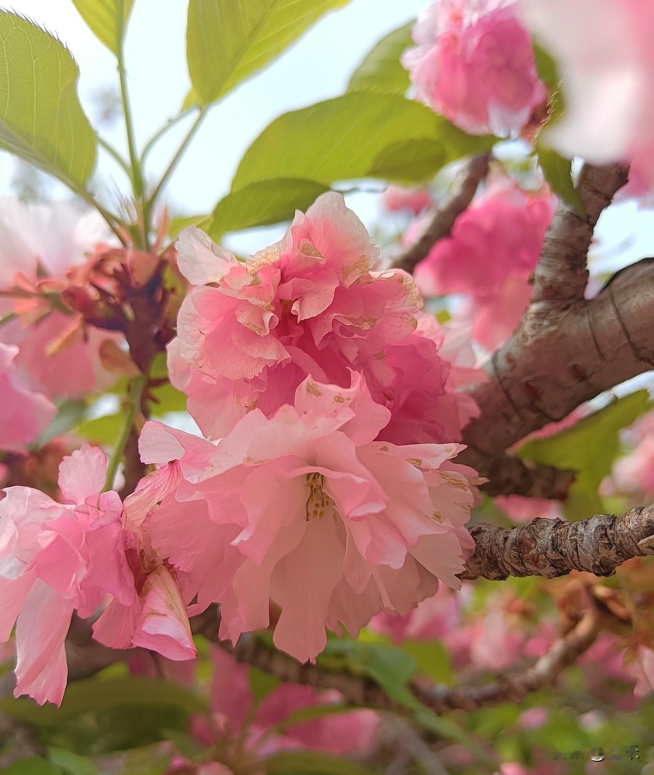 今天在朝阳公园看到了三种颜色的樱花。