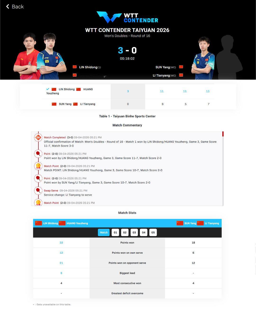🏓04.09『正赛第一比赛日』📎混合双打1/8决赛黄友政/石洵瑶🇨🇳3-0温瑞博/纵歌曼🇨🇳📎男子单打1/16决赛黄友政🇨🇳3-2吉山瞭一🇯🇵📎男子双打1/8决赛黄友政/林诗栋🇨🇳3-0孙杨/李天阳🇨🇳