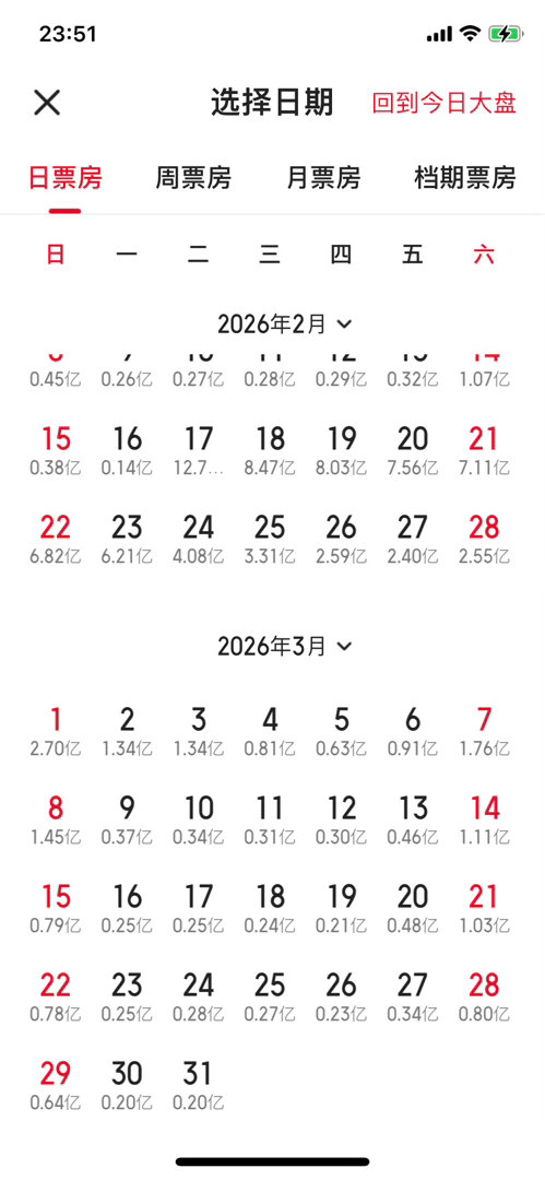 今天周一,单日票房1380多万,不及除夕夜的1400万票房,是今年以来票房最低的一天。