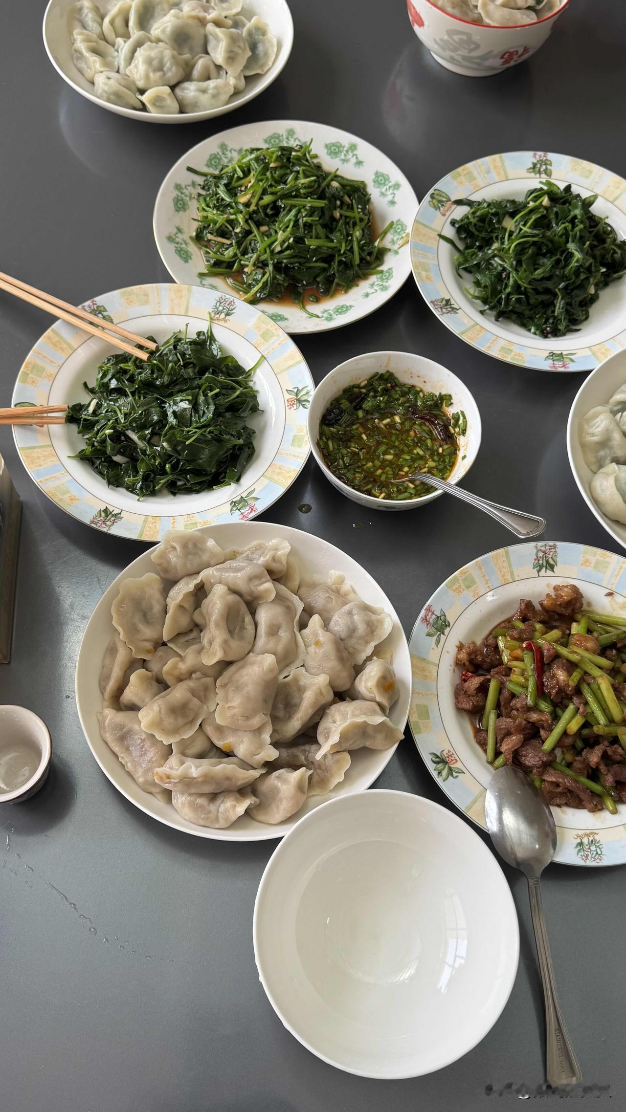 包的牛肉饺子和韭菜鸡蛋三鲜馅儿饺子。