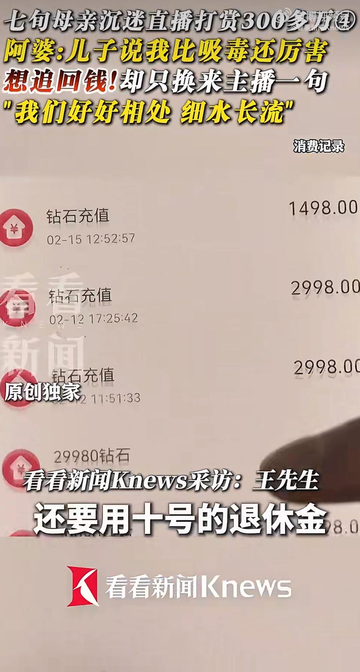 “糊涂啊!”70岁省吃俭用一辈子的阿婆,半年砸330万给直播间男主播刷礼物,最后连15块电费都掏不出来?钱还是儿子在边疆卖命攒了十几年的血汗钱!有人说主播刻意骗老人该全额退,也说阿婆自愿打赏怪不得别人,你觉得这钱能要回来吗?