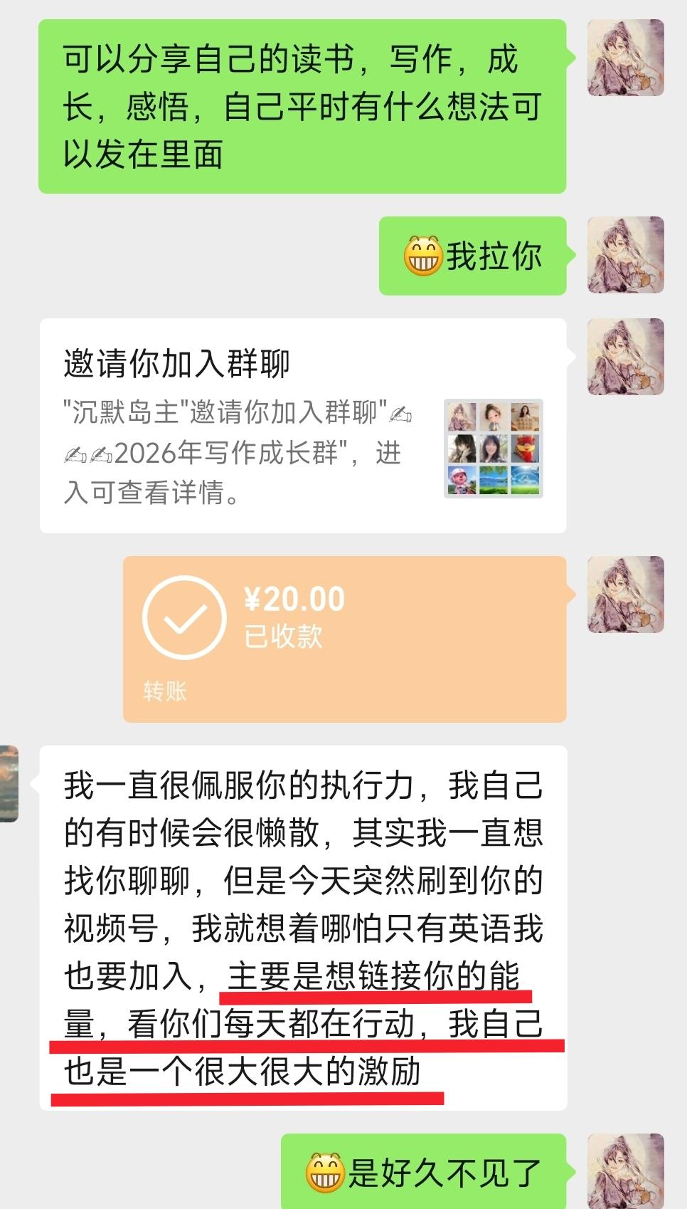 她说想链接我,能增加能量,