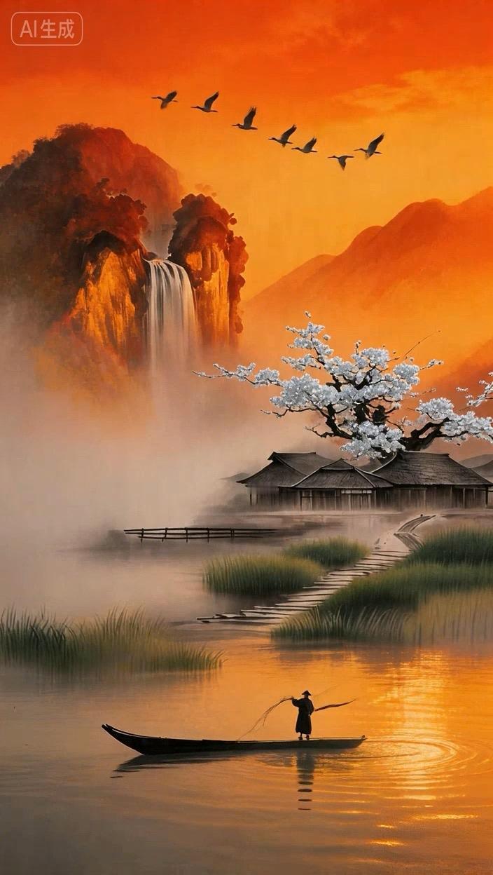 寂寞渔翁美画中。
